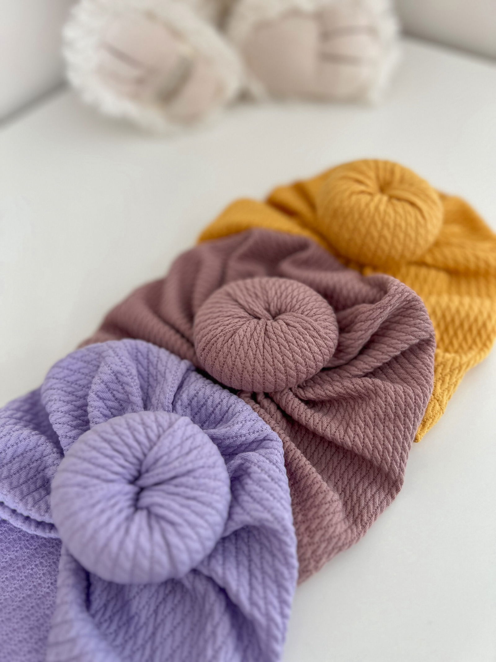 Turban Donut może również pełnić funkcję ozdobną, stanowiąc uroczy akcent w dziecięcej stylizacji. Wyposażony w delikatne tłoczenie na całości materiału, prezentuje się niezwykle uroczo.