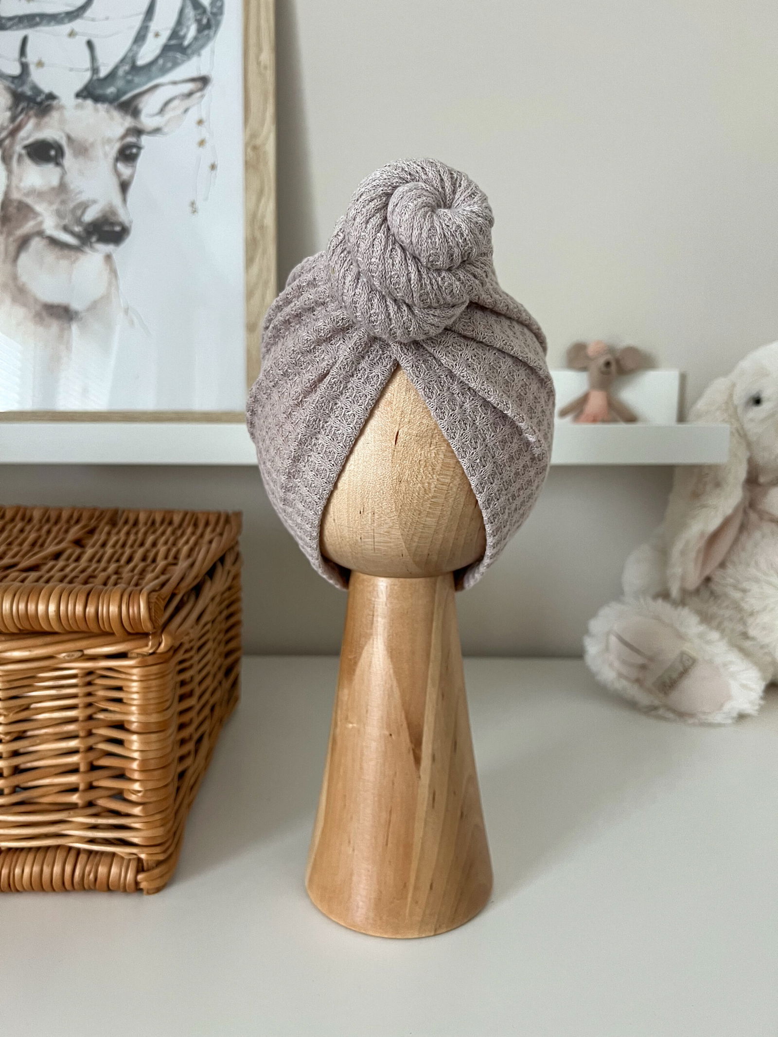 Ten piękny turban wykonany jest z miękkiej i przyjemnej w dotyku tkaniny, która nie tylko ochrania główkę Twojego dziecka przed chłodem, ale także nadaje mu niepowtarzalny wygląd. Charakterystyczny element dekoracyjny w formie skręconej muszli ślimaka dodaje mu uroku i sprawia, że wyróżnia się spośród innych nakryć głowy.