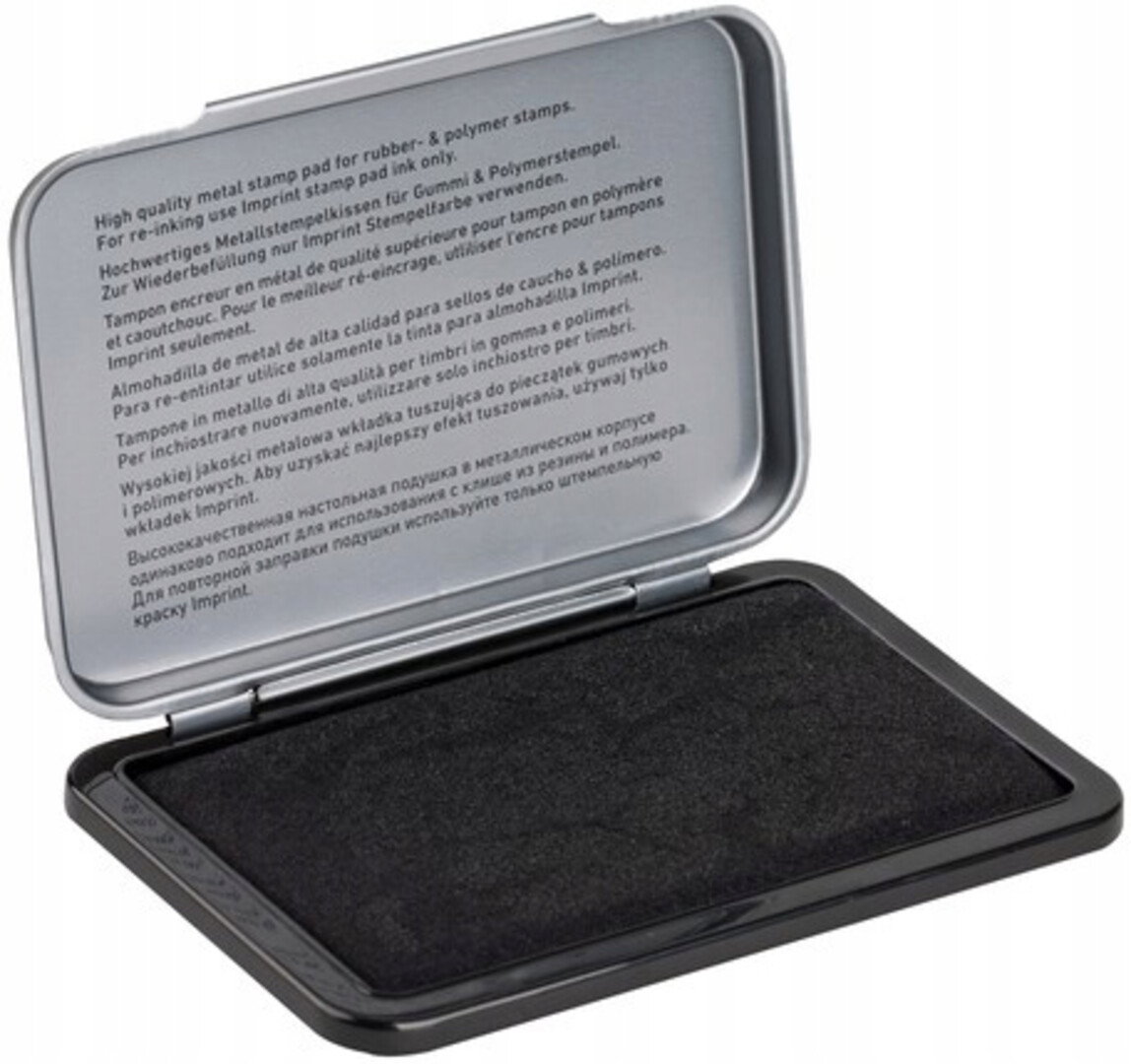 Tusz do pieczątek standardowy Imprint 1 ml czarnyPoduszka do stempli Imprint to idealne rozwiązanie dla osób ceniących jakość i precyzję. Świetnie sprawdza się z każdym rodzajem stempli, zapewniając wyraźne odbitki.Wyposażona w metalową pokrywę, chroni przed przypadkowym zabrudzeniem biurka, gwarantując porządek w miejscu pracy.Za pomocą dopasowanego kolorystycznie uchwytu łatwo rozpoznasz potrzebny kolor poduszki. Farba na bazie wody nie wysycha, oferując trwałe użytkowanie.Wybierz spośród 5 dostępnych kolorów: czarnego, niebieskiego, czerwonego, zielonego i fioletowego, by najlepiej dopasować produkt do swojego stylu.✅ Producent: Trodat GmbH✅ Marka: Trodat✅ Model: 9073M✅ Wymiary: 1,2 x 10,2 x 7 cm✅ Waga: 50 g✅ Kolor: Czarny✅ Liczba przedmiotów: 1✅ Kolor atramentu: Czarny✅ Numer katalogowy producenta: 153585EBPP800, SZNW+