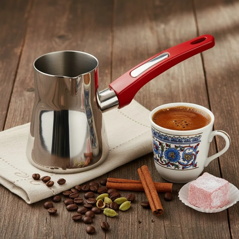 Stalowy tygielek do parzenia kawy po turecku to prawdziwy niezbędnik dla każdego miłośnika tego napoju. W celu uzyskania wyjątkowego smaku kawy po turecku należy wsypać zmielone ziarna kawy do tygielka, następnie zalać wodą i podgrzewać na małym ogniu. Należy powtarzać tą czynność kilkukrotnie, tak aby nie doprowadzić do wrzenia.