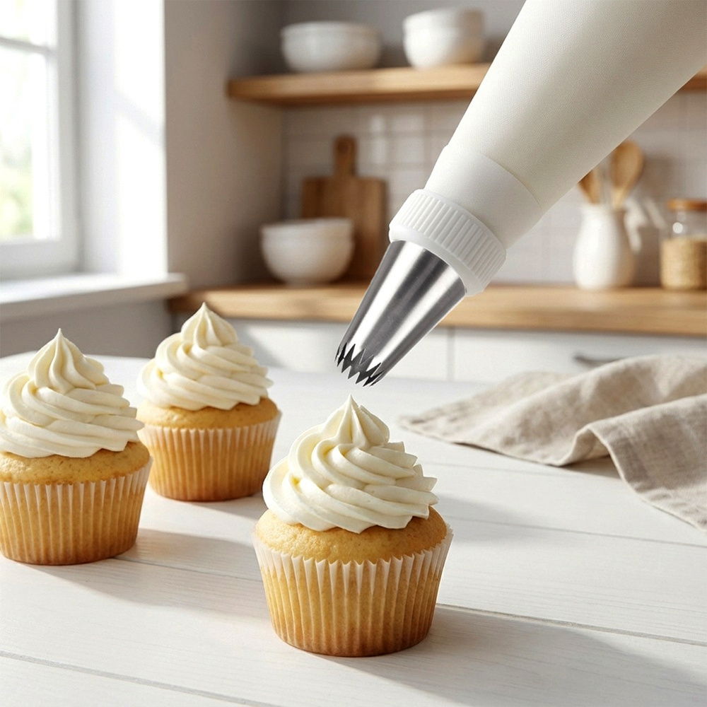 Pozwoli uzyskać efektowne wzory - Umożliwia tworzenie efektownych dekoracji z kremów na ciastach, tortach i innych deserach.