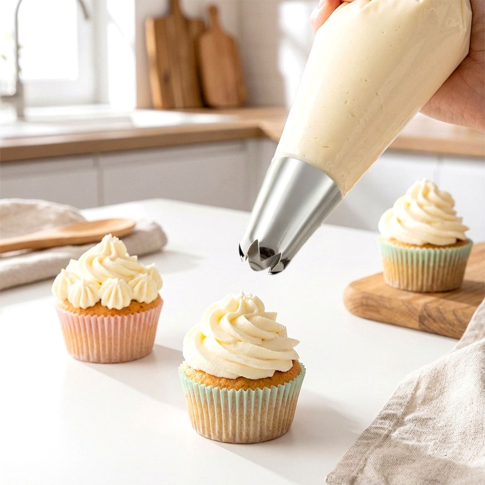 Pozwoli uzyskać efektowne wzory - Umożliwia tworzenie efektownych dekoracji z kremów na ciastach, tortach i innych deserach.