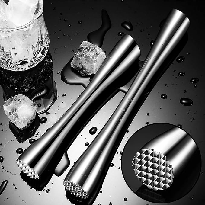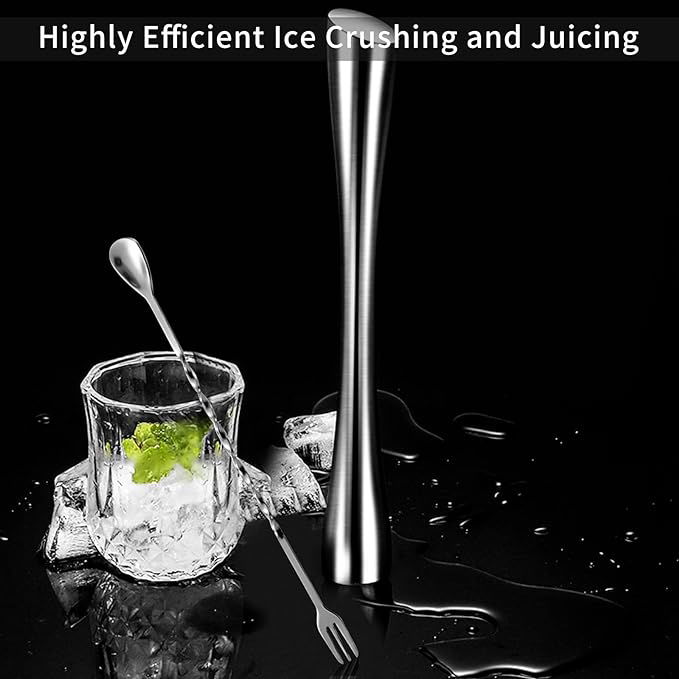 【Kombinacja zestawu】 Ubijak do koktajli + łyżka do mieszania koktajli, tłuczek koktajlowy ze stali nierdzewnej o długości 26 cm i łyżka barowa o długości 24,6 cm, klasyczne połączenie do przygotowywania koktajlowego mojito i napojów sokowych.