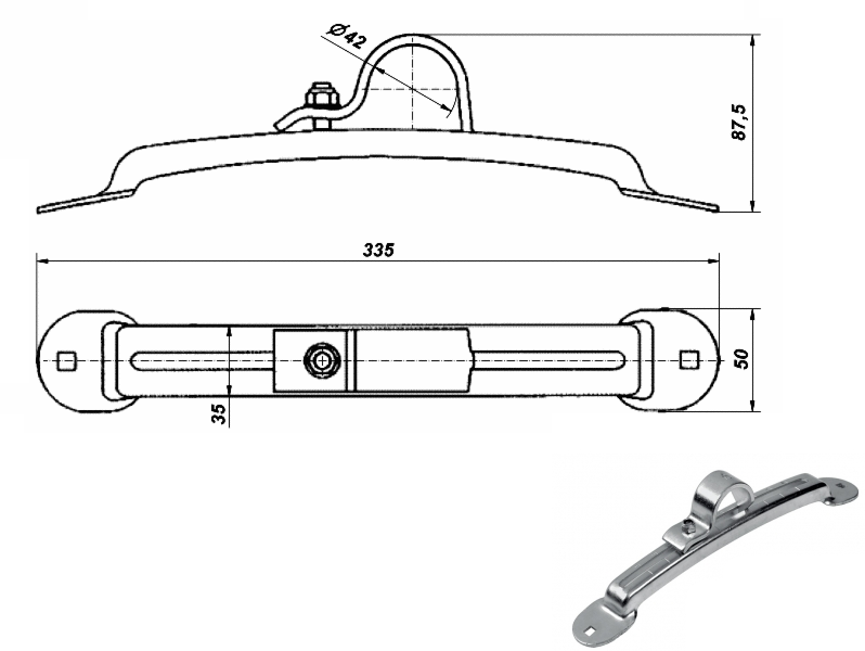 - Długość 335 mm szerokość 35 mm wysokość 88 mm średnica rurki 42 mm