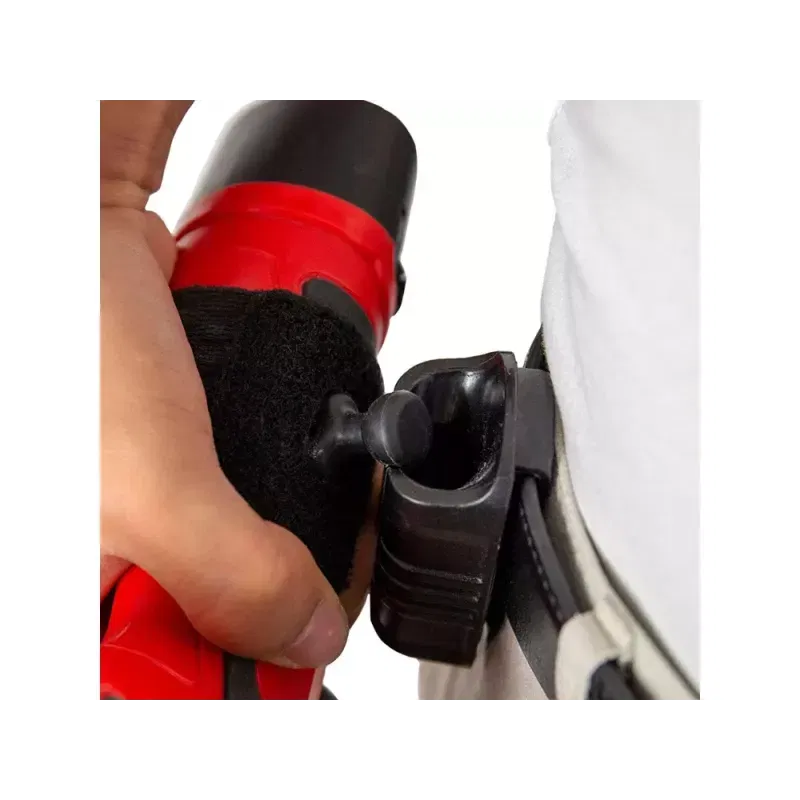 Uchwyt narzędziowy do paska to idealne rozwiązanie dla domowych majsterkowiczów i nie tylko. Dzięki elastycznemu paskowi na rzep dopasujemy go nie tylko do wkrętarki, ale również młotka, latarki czy innych akcesoriów warsztatowych. Wewnątrz pasek jest pokryty antypoślizgowymi wypustkami, dzięki