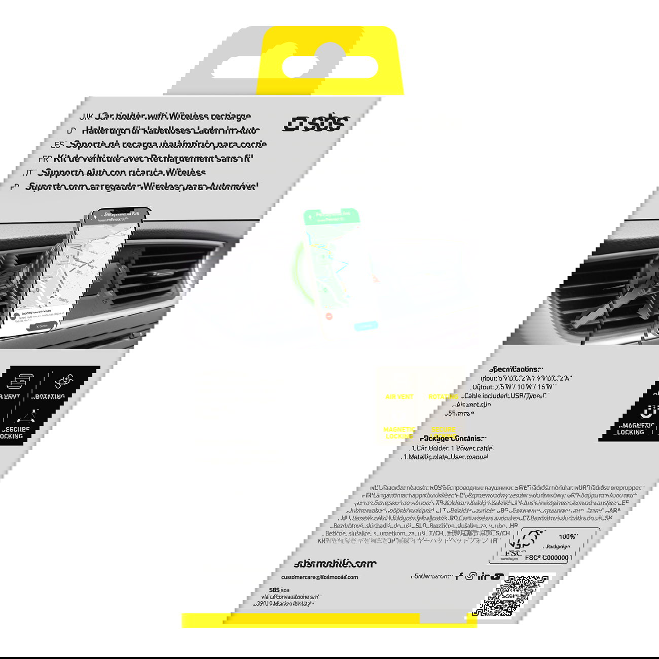 Kod produktu: 1027895Uchwyt do smartfona SBS TESUPMAGWIR15W to praktyczne i innowacyjne rozwiązanie dla osób, które cenią wygodę i funkcjonalność podczas podróży samochodem. Dzięki kompatybilności z technologią MagSafe zapewnia bezpieczne, magnetyczne mocowanie Twojego urządzenia oraz możliwość bezprzewodowego ładowania o mocy 15 W. Solidna konstrukcja uchwytu stabilizuje telefon nawet podczas dynamicznej jazdy, a obrotowy przegub pozwala dostosować kąt widzenia w zależności od potrzeb. Dodatkowy schowek na kabel ładowania gwarantuje porządek w samochodzie, a kompaktowa konstrukcja sprawia, że uchwyt jest łatwy w montażu i nie zajmuje wiele miejsca. Wybierz SBS TESUPMAGWIR15W, by połączyć nowoczesną technologię z wygodą użytkowania, zapewniając pełną naładowanie smartfona w zaledwie 50 minut.Stabilność i łatwy montażUchwyt SBS TESUPMAGWIR15W został zaprojektowany z myślą o stabilnym i bezpiecznym mocowaniu smartfona w samochodzie. Dzięki klipsowi na kratkę nawiewu uchwyt jest łatwy w instalacji i idealnie pasuje do różnych typów nawiewów, w tym okrągłych.Bezprzewodowe ładowanie 15 WŁadowarka zapewnia szybkie i wydajne ładowanie bezprzewodowe, kompatybilne z technologią MagSafe. Twoje urządzenie może być w pełni naładowane w około 50 minut, co czyni ją idealnym rozwiązaniem dla podróży służbowych i codziennego użytkowania.Obrotowy przegub 360deg Elastyczność uchwytu pozwala na ustawienie telefonu pod dowolnym kątem. Niezależnie od tego, czy potrzebujesz go w trybie pionowym, czy poziomym, zawsze możesz dostosować go do swoich potrzeb, zapewniając wygodne korzystanie z nawigacji czy rozmów w trybie głośnomówiącym.Funkcjonalny designUchwyt wyposażono w dedykowany schowek na kabel ładowania, co pozwala utrzymać porządek w samochodzie i mieć kabel zawsze pod ręką. To rozwiązanie jest praktyczne i estetyczne, idealnie wpisując się w potrzeby nowoczesnych użytkowników.Kompatybilność z szeroką gamą urządzeńDzięki technologii MagSafe uchwyt współpracuje z modelami iPhone obsługującymi to rozwiązanie, a dołączona metalowa płytka umożliwia korzystanie z uchwytu także z innymi smartfonami. To uniwersalne narzędzie, które spełni wymagania każdego kierowcy.Najważniejsze cechy: