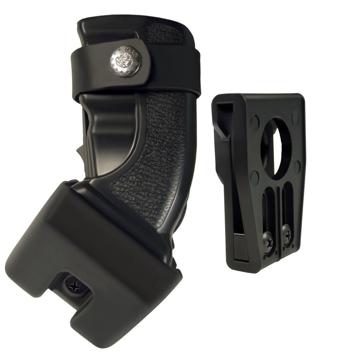 Uchwyt umożliwia szybkie oraz intuicyjne dobycie paralizatora. Zapinany na zatrzask pasek, zabezpiecza paralizator przed uszkodzeniem oraz wysunięciem się z pokrowca. Wykonany z lekkiego utwardzanego polimeru. Dodatkowa śruba umożliwia indywidualne dostosowanie siły docisku kabury.