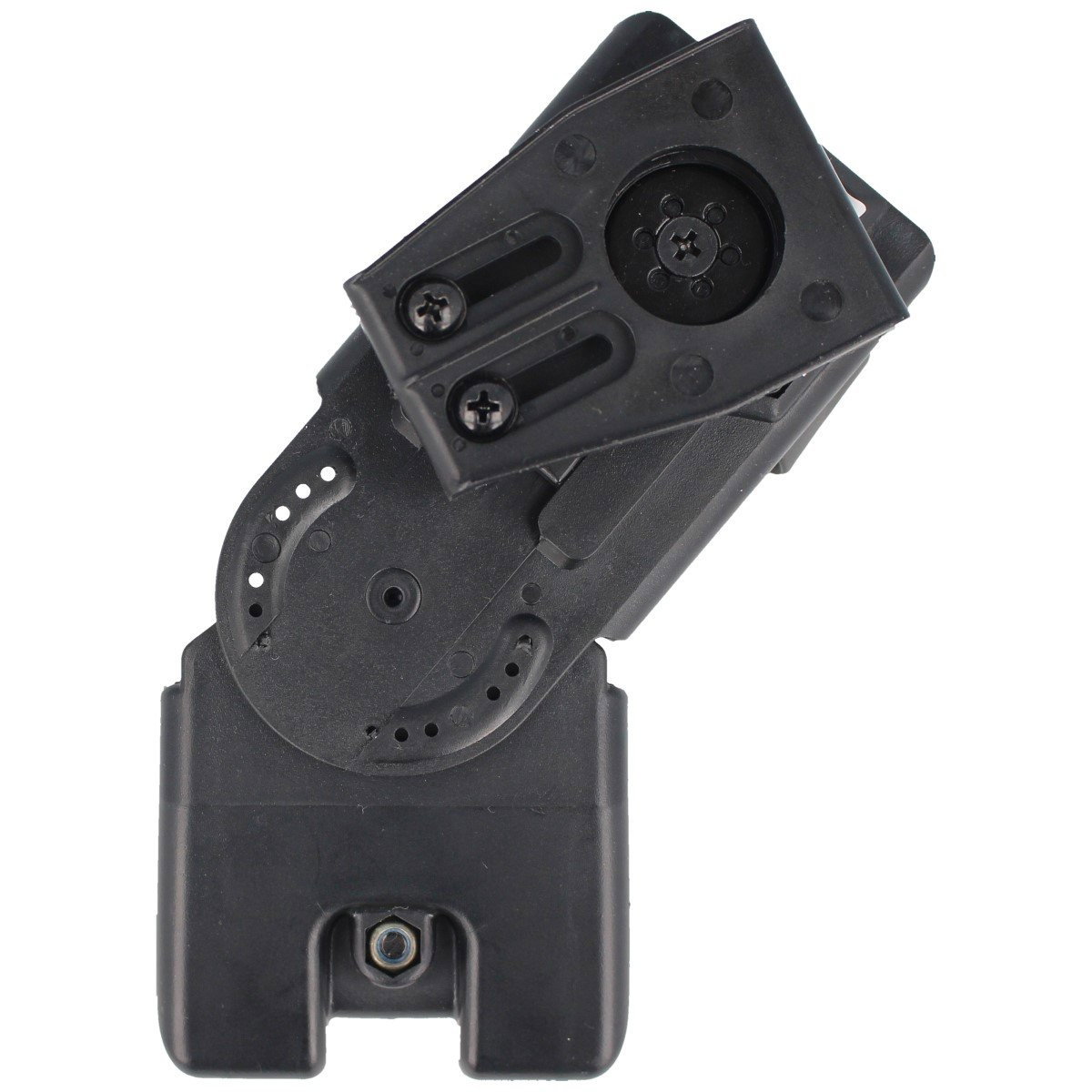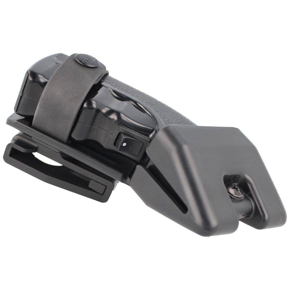 SGH-34-200 profesjonalny obrotowy uchwyt z mocowaniem UBC-03 do przenoszenia paralizatora elektrycznego ESP: POWER 200 lub SCORPY 200. Dzięki regulacji kąta nachylenia kaburę można szybko przystosować do przenoszenia jednego z paralizatorów: POWER 200 lub SCORPY 200 jak również dostosować do osoby prawo jak i leworęcznej.