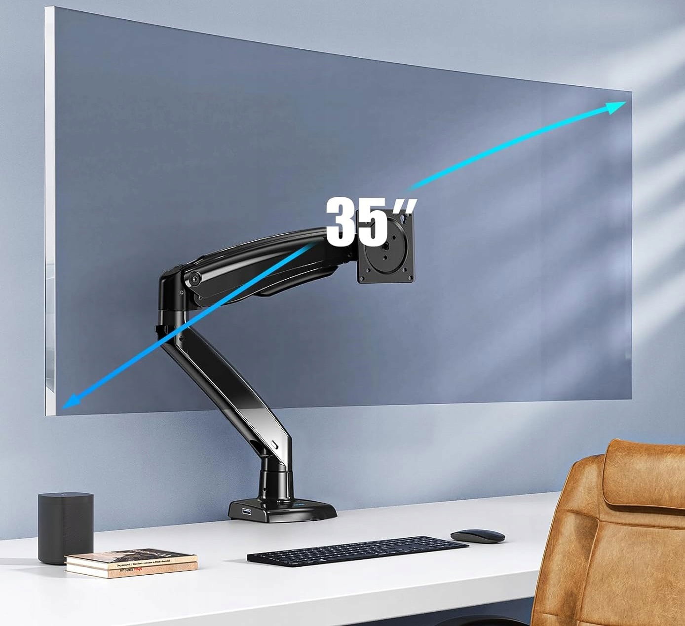 - Pojedynczy uchwyt na monitor HUANUO idealnie pasuje do większości płaskich lub zakrzywionych ekranów komputerowych LCD LED o przekątnej do 35 cali!