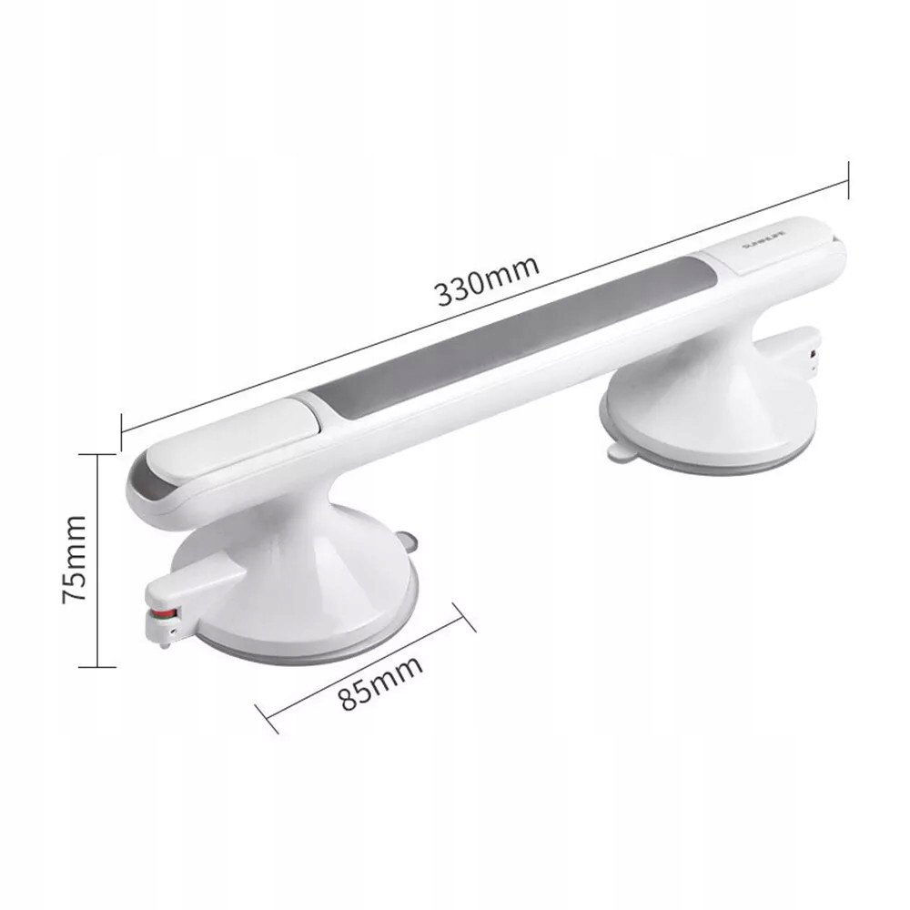 Wytrzymały uchwyt z przyssawkami pozwala zachować bezpieczeństwo w wannie, pod prysznicem czy też podczas korzystania z toalety. Poręcz blokuje się na płaskiej i nie porowatej powierzchni dzięki dużym i mocnym przyssawkom.