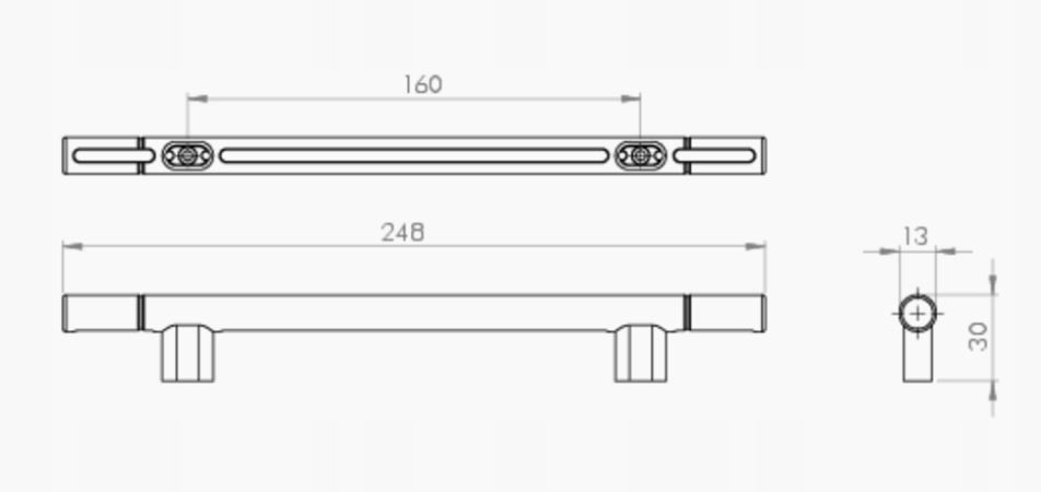 Uchwyt Meblowy Czarny Matowy do Szafki Szuflady Kuchennej reling L248 160mm