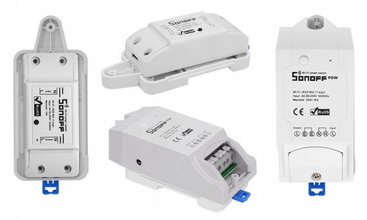 Dla większych Sonoff-ów np. POW R2 (o większych wymiarach) uchwyt posiada dodatkową przedłużkę (odłączaną jak na zdjęciu).