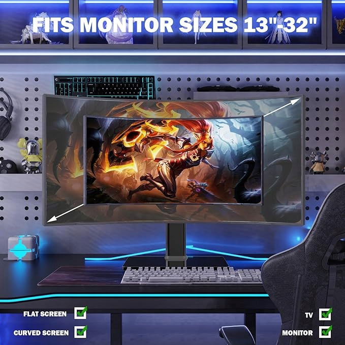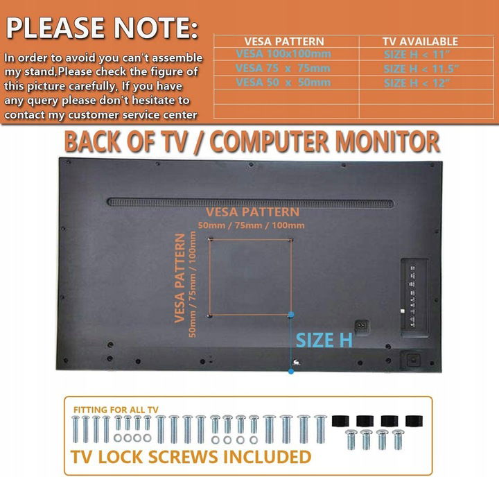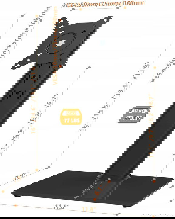 Kompatybilność ? Pojedynczy uchwyt na monitor komputerowy wolnostojący stojak biurkowy pasuje do płaskich ekranów LCD LED o wymiarach 50 x 50 mm, 75 x 75 mm lub 100 x 100 mm z tylnymi otworami montażowymi, zawiera zarządzanie kablami, aby utrzymać przewody w porządku