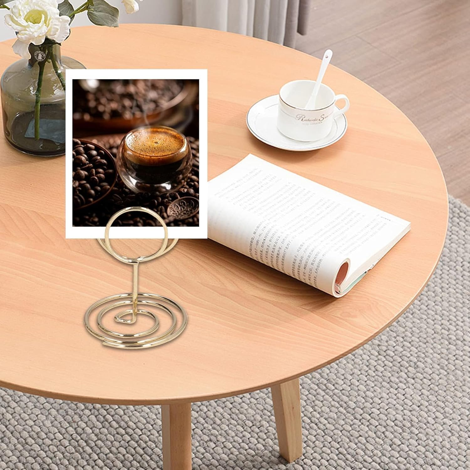 ŁATWY W UŻYCIU: Uchwyt na zdjęcia ma wygodną okrągłą podstawę, dzięki czemu można go łatwo postawić na stole, aby przymocować klipsy i wizytówki.