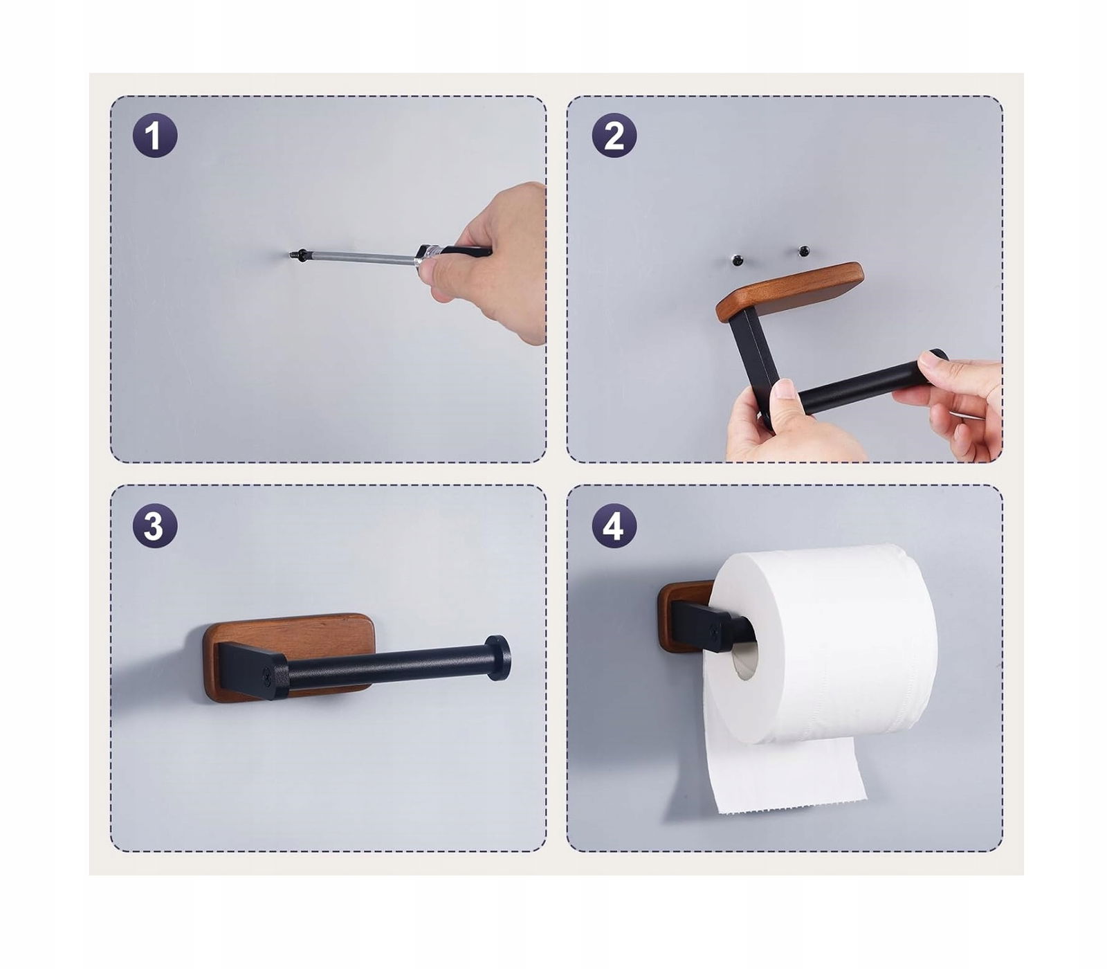 Uchwyt na papier toaletowy jest wykonany ze stali nierdzewnej SUS 304 i podkładki z litego drewna, nowoczesne wzornictwo, matowe czarne wykończenie z wysokiej jakości drewnem, nadaje się do różnych stylów mieszkania, dodaje nowoczesnej atmosfery również z odrobiną natury. Nierdzewny, odporny na korozję i wodoszczelny.