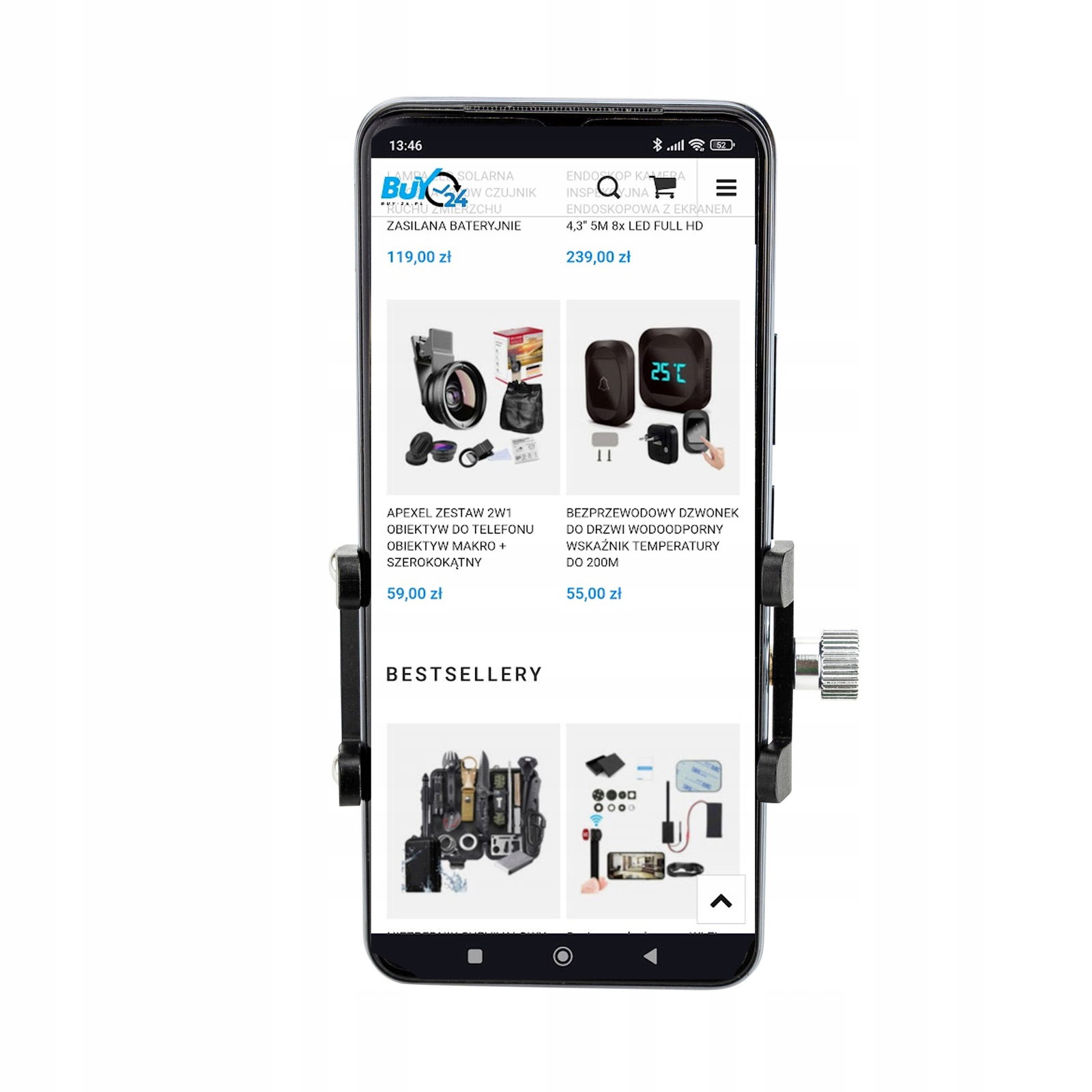 UCHWYT NA TELEFON ROWEROWY DO HULAJONOGI SKUTERA SKRĘCANY ALUMINIOWY