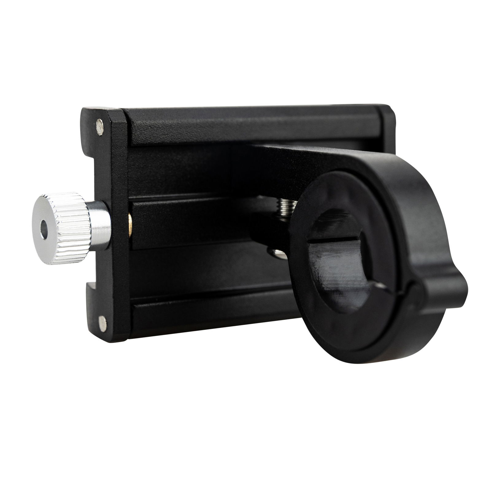 Dzięki regulowanej szerokości, uchwyt jest kompatybilny z różnymi modelami telefonów o rozmiarach od 50 do 100 mm, co zapewnia pewne trzymanie nawet w trakcie wibracji i trudnych warunków terenowych. Solidna konstrukcja z wysokiej jakości lakierowanego aluminium gwarantuje nie tylko bezpieczne, ale także stabilne zamocowanie.