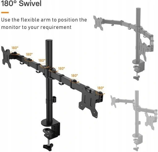 Wyposażone w nachylenie +90°/-90°, obrót o 180° i obrót o 360° dla doskonałej elastyczności; maksymalna długość przedłużenia ramienia 430 mm, regulacja wysokości dla optymalnego kąta widzenia; idealne dla wielozadaniowców, projektantów, programistów, graczy