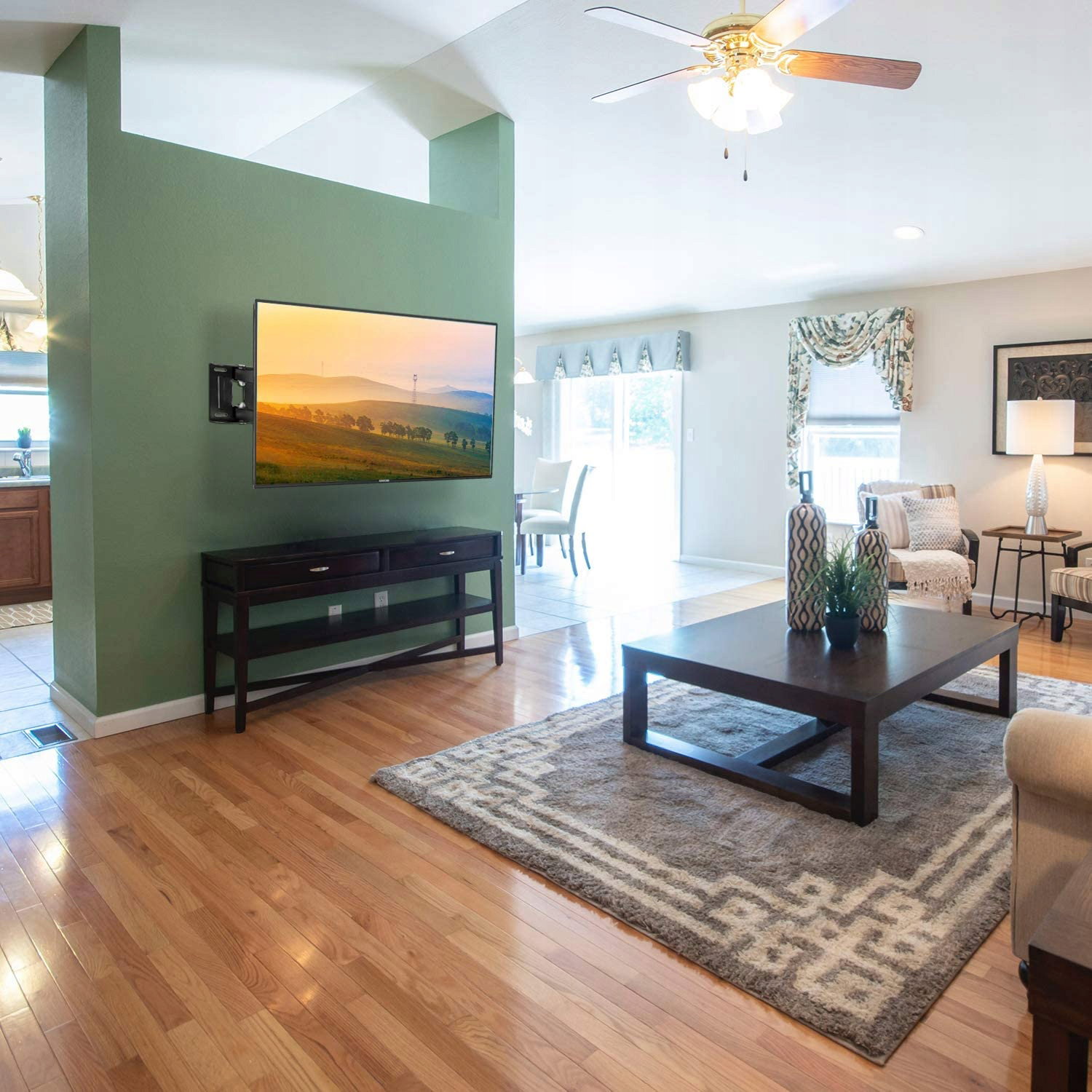 BEZPIECZNY WYBÓR!: Nigdy nie jest za późno, aby zapewnić bezpieczeństwo swojemu domowi. Ten wielkoformatowy uchwyt ścienny do telewizora wykonany jest ze stali walcowanej na zimno, ma 2 stalowe ramiona i może utrzymać telewizor o wadze do 45 kg. Powiedz nie! do telewizorów ważących 45 kg spadających ze ścian.