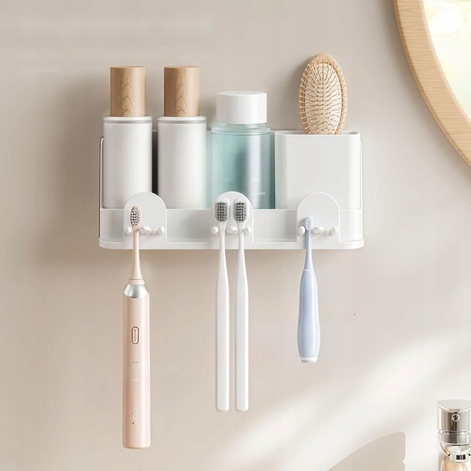 Ten ścienny organizer na szczoteczki do zębów to inteligentne rozwiązanie dla całej rodziny. Minimalistyczny design, samoprzylepny montaż bez wiercenia i przemyślany układ sprawiają, że wszystko ma swoje miejsce – higienicznie, estetycznie i wygodnie.