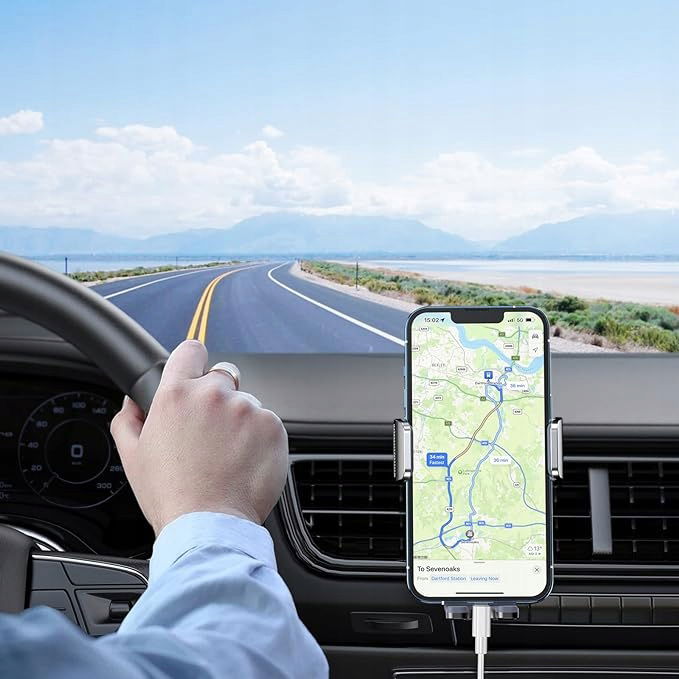 Kompleksowa ochrona: Super stabilna trójkątna konstrukcja doskonale chroni urządzenie mobilne przed wstrząsami i poślizgami podczas jazdy; Ponadto ramię klipu i uchwyt są wyposażone w super miękkie i super elastyczne silikonowe podkładki, aby zapewnić, że urządzenie i wylot powietrza samochodu nie są zarysowane podczas jazdy.