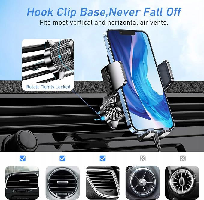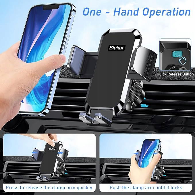 Blukar Wsparcie Mobile Samochód, Wsparcie Telefon Powietrza Samochodu Wentylacja z 2023 Upgraded Klip Stabilny&360° Obrót, Zwolnienie Jeden Przycisk Uchwyt Mobile Samochodu dla Smartphone/GPS