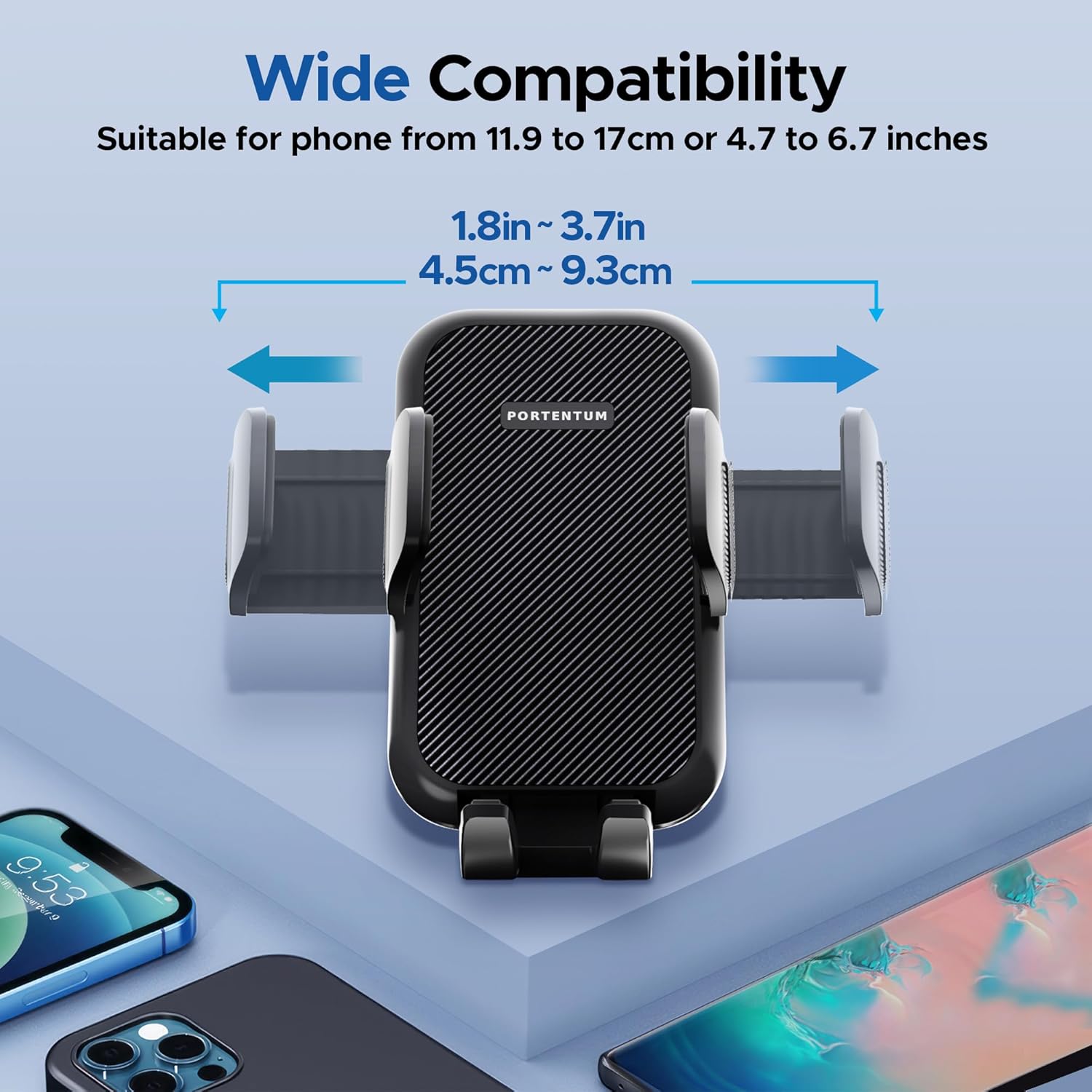 - Mocny i trwały uchwyt samochodowy na telefon komórkowy: dzięki udoskonalonej konstrukcji haka i regulowanemu pokrętłu, uchwyt na telefon komórkowy PORTENTUM jest bezpiecznie zamocowany do nawiewu samochodowego. Hak zawiera metalowe elementy, które gwarantują wyjątkową stabilność i trwałość.