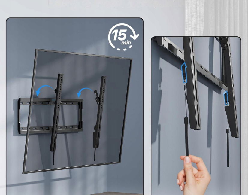 - ✴️Ukrywanie i zabezpieczanie kabli: Ten uchylny uchwyt ścienny do telewizora Samsung ma pustą konstrukcję, dzięki czemu można go zamontować bezpośrednio do gniazdka elektrycznego, ukrywając w ten sposób kable. Telewizor można łatwo zablokować i odblokować za pomocą linki. Mocne i solidne krawędzie uchwytu skutecznie zapobiegają przesuwaniu się telewizora.