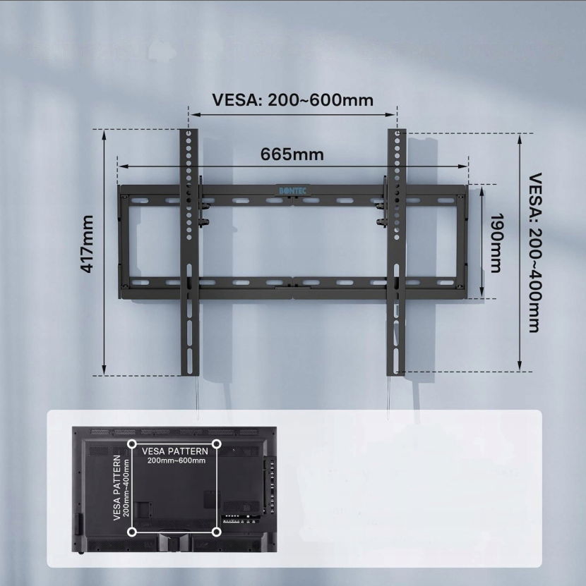 - ✴️Uniwersalna zgodność ze standardem VESA: Nasz ultrawytrzymały uchwyt ścienny do telewizorów pasuje do większości telewizorów 37''-80'', w tym marek takich jak Samsung, Panasonic, Sharp, Toshiba, Thomson, LG, Hissense i TCL. Ten uchwyt ścienny do telewizorów 55 cali i większych wytrzymuje obciążenie do 55 kg, a uchwyt do telewizorów 65 cali i większych jest kompatybilny ze standardami VESA od 200 x 200 mm do 600 x 400 mm. Uchwyt do telewizorów 55 cali i większych można łatwo zamontować zarówno na drewnianych słupkach, jak i na ścianach betonowych. Przed zakupem prosimy o sprawdzenie specyfikacji VESA, wagi i rozmiaru telewizora.