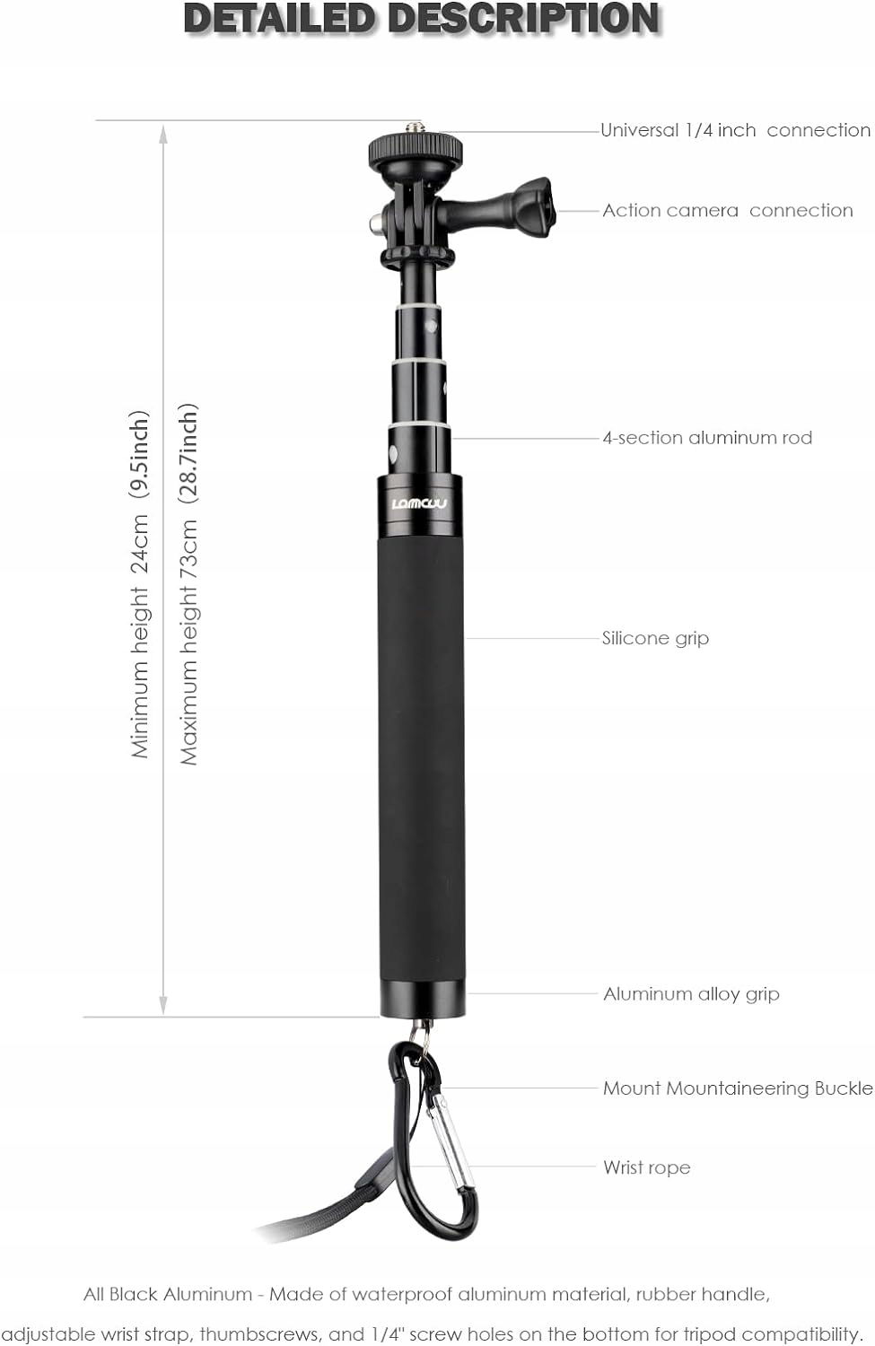 dealny towarzysz w podróży - Lammcou Actioncam Selfie Stick to drążek przedłużający o długości 73 cm z aluminium, który umożliwia nową perspektywę i sprawia, że aparat jest bliżej akcji. Ten kijek do selfie idealnie nadaje się do selfie, nagrywania filmów o sportach ekstremalnych, takich jak deskorolka, surfowanie, skoki spadochronowe, jazda na nartach itd