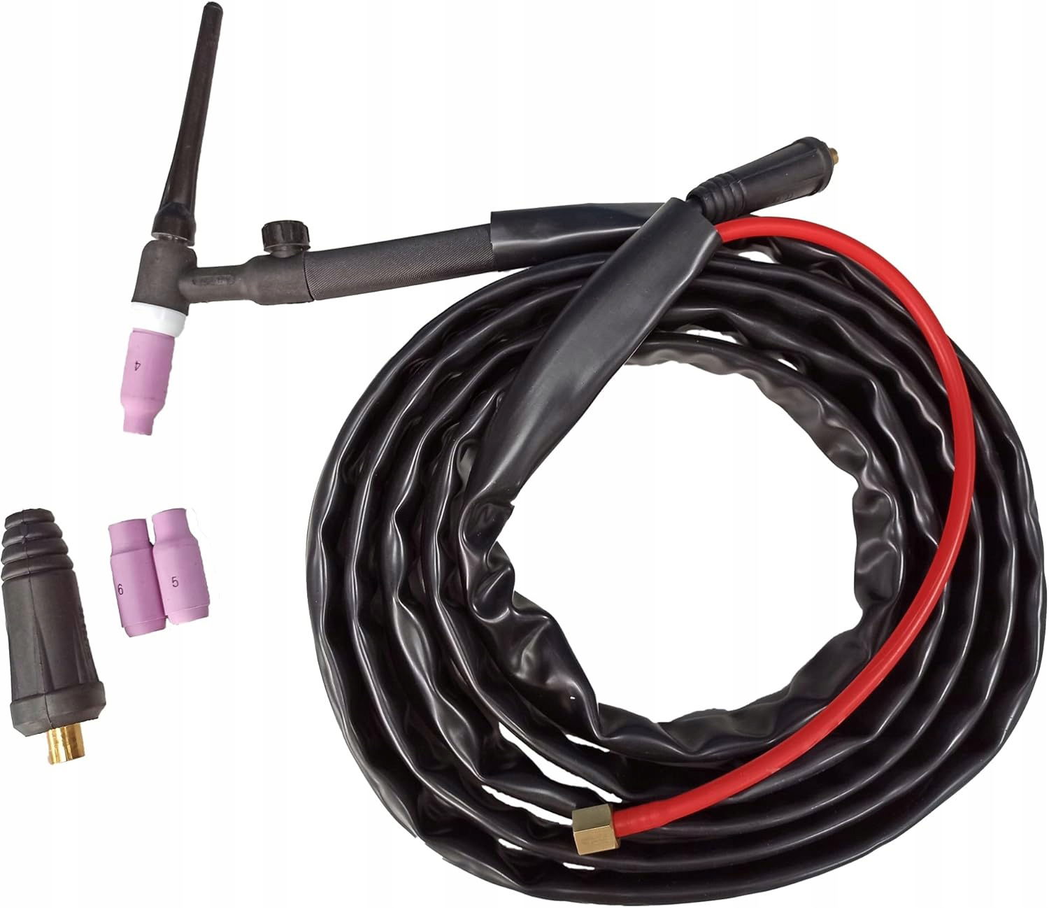 Ten 4-metrowy profesjonalny palnik TIG 17 V z zainstalowanym złączem 10-25 nadaje się do każdego sprzętu inwerterowego bez wysokiej częstotliwości.