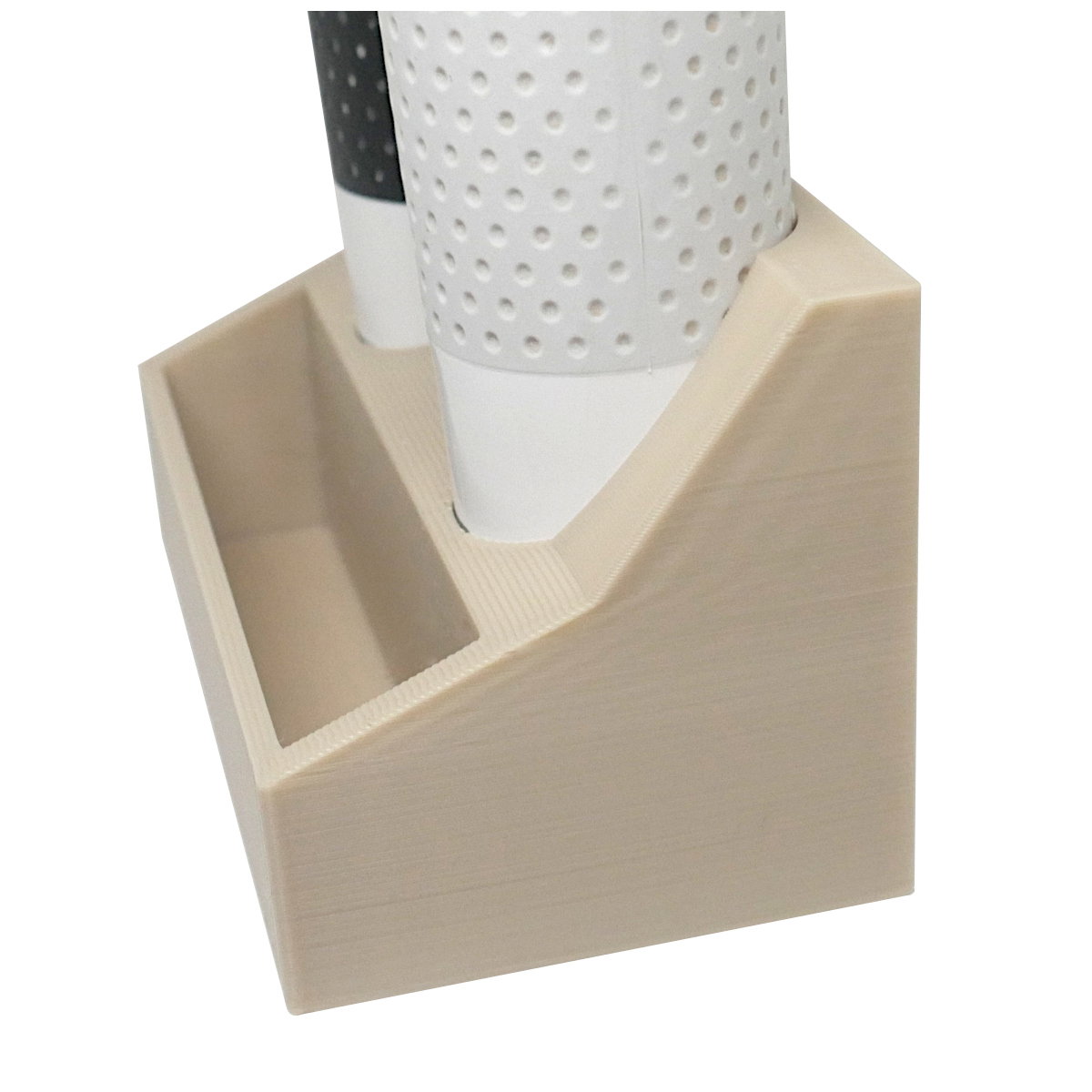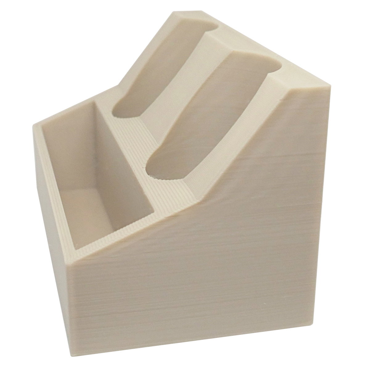 Zaprojektowaliśmy uchwyt tak, aby nie tylko wyglądał ładnie w każdej łazience, ale również był praktyczny, dlatego nasz stojak posiada kieszonkę, w której możesz przechowywać inne akcesoria łazienkowe, np. dodatkową główkę szczoteczki, nić dentystyczną, pęsety, waciki czy patyczki kosmetyczne.