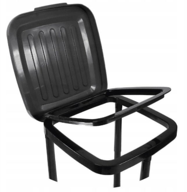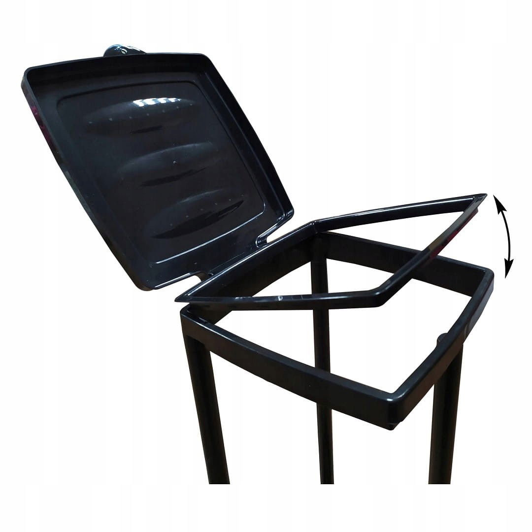 - górna część stojaka prócz pokrywy na zawiasie zawiera także ramkę, która służy do mocowania worka na śmieci,