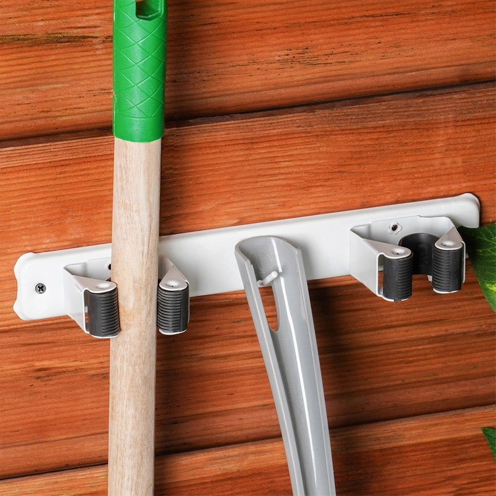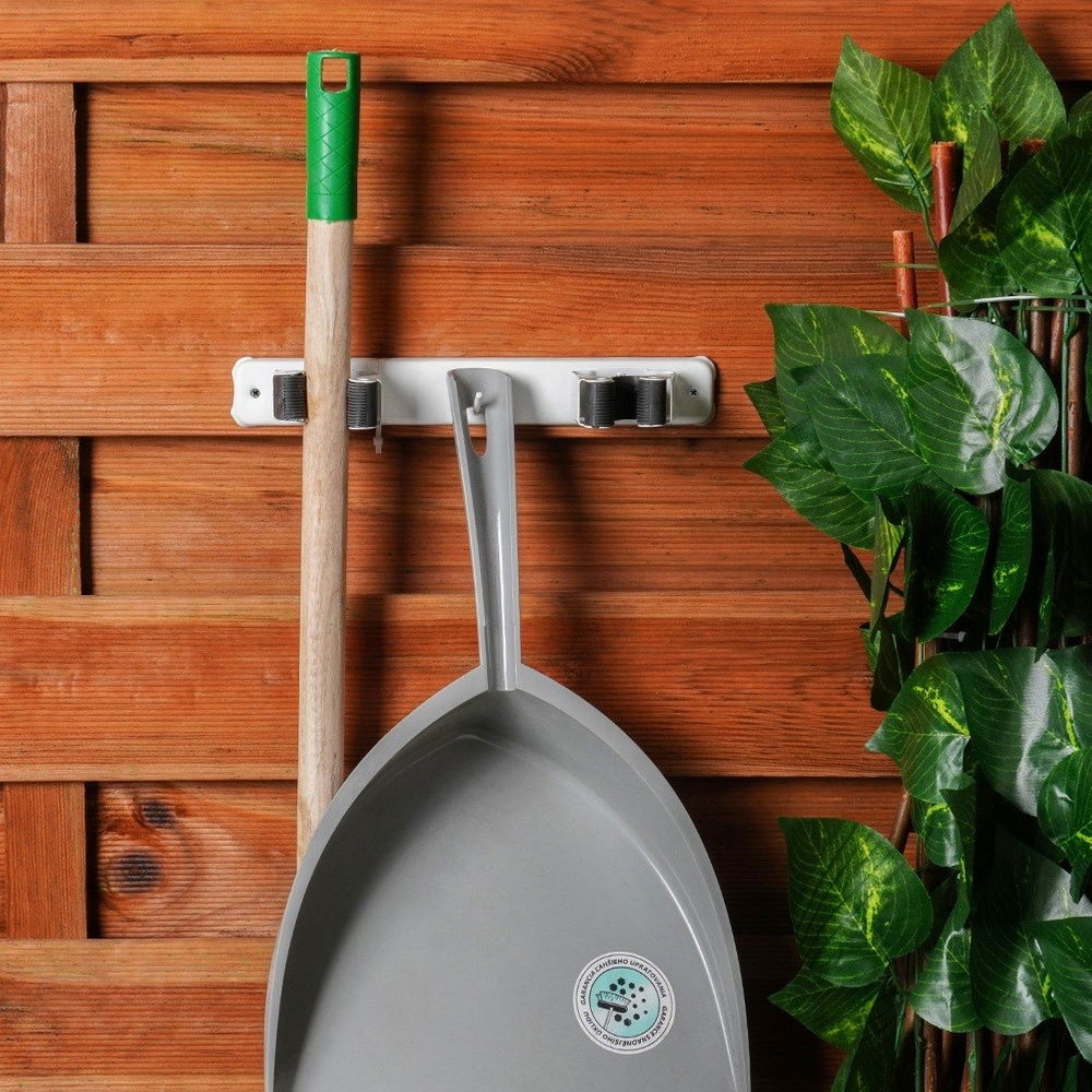 PRZYDATNY - Posiada dwa miejsca do powieszenia oraz dodatkowy haczyk na ręcznik czy ścierkę. Wieszak doskonale sprawdzi się do uporządkowania różnych narzędzi ogrodowych oraz domowych, takich jak np. szczotka, miotła, grabie czy mop.
