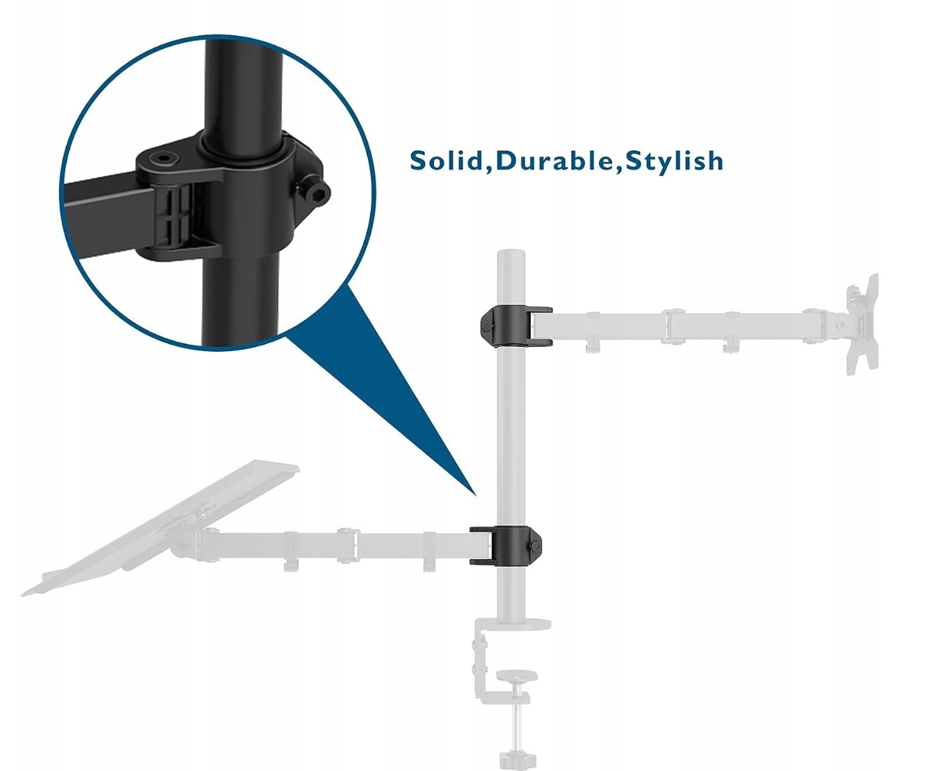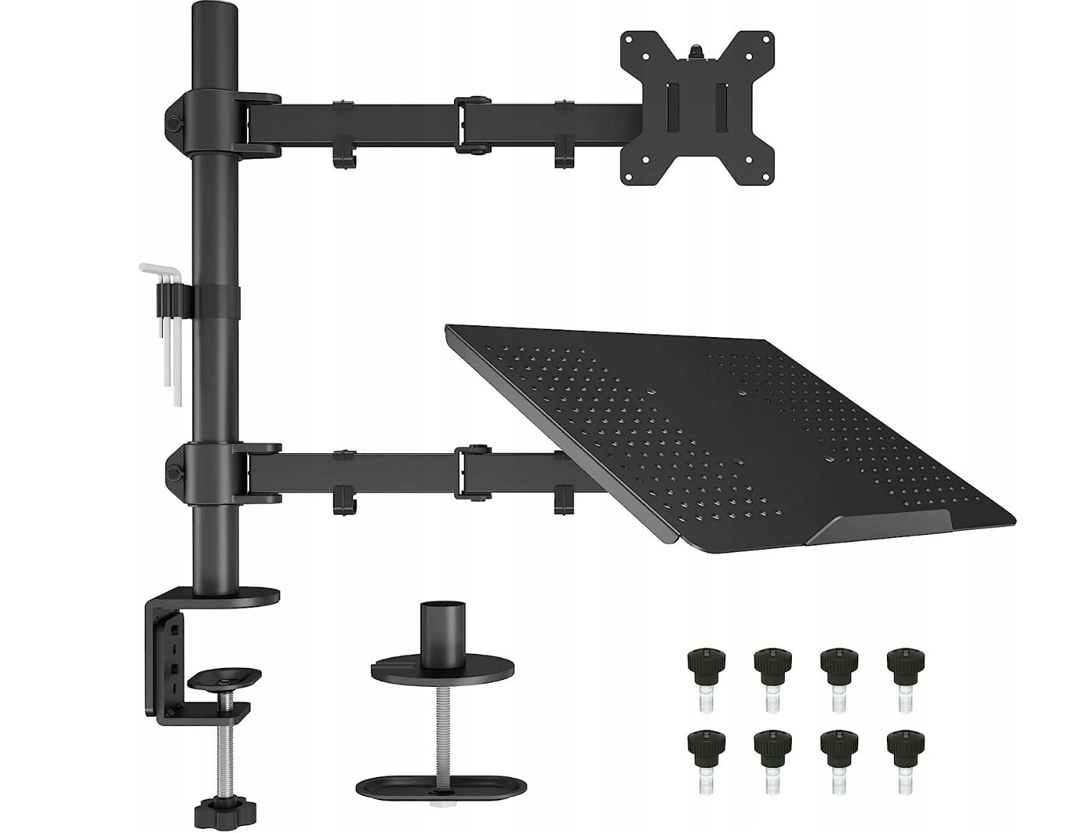 Uchwyt z tacą na Monitor i Laptopa 75mm & 100mm 13" - 27" POWYSTAWOWY