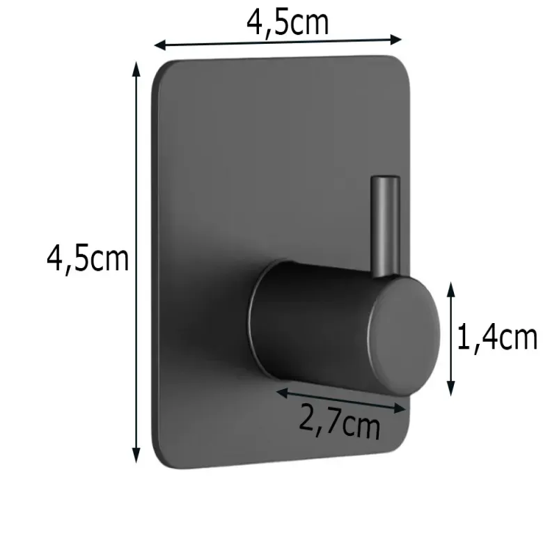 Dwa czarne i dwa srebrne wieszaki wykonano z solidnego metalu, który cechuje się odpornością na wilgoć, rdzę oraz codzienne użytkowanie. Dzięki minimalistycznemu designowi doskonale wkomponują się zarówno w nowoczesne, jak i klasyczne wnętrza. ✅ ŁATWY MONTAŻ BEZ WIERCENIA – NA TAŚMĘ DWUSTRONNĄ