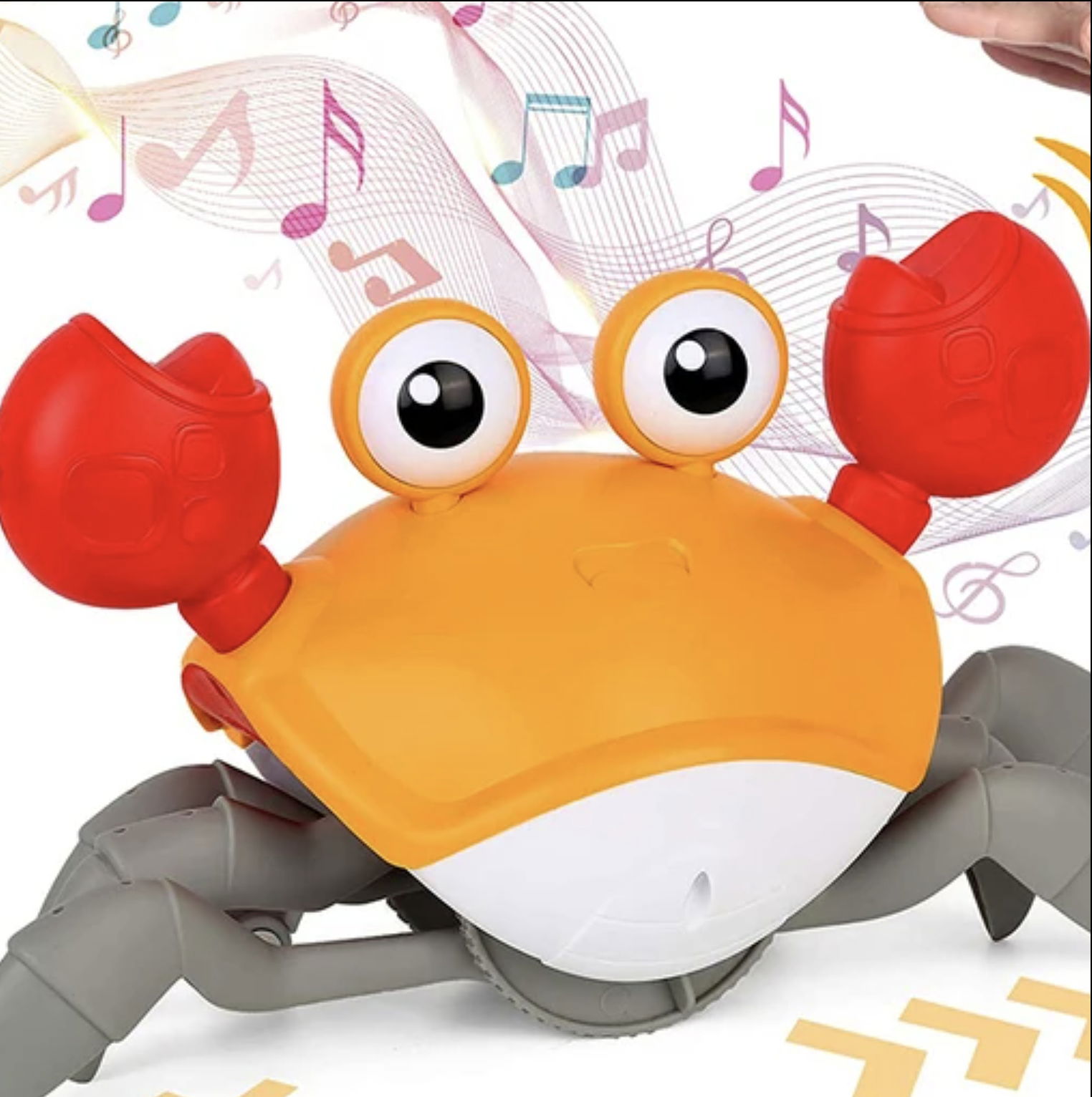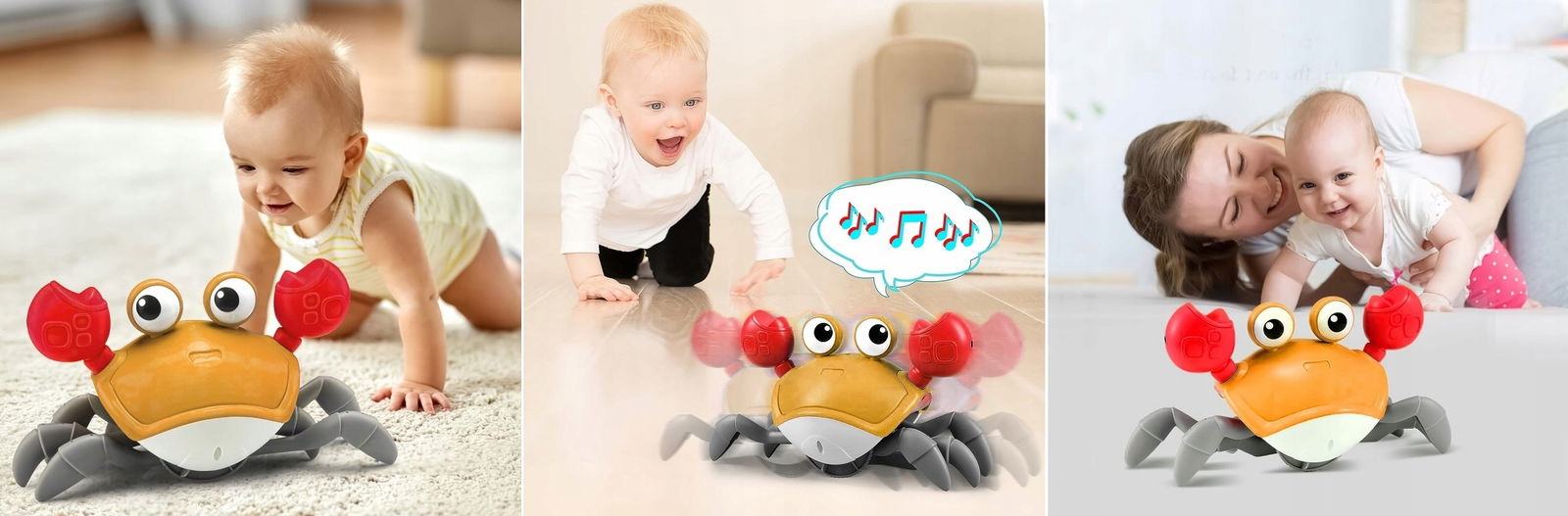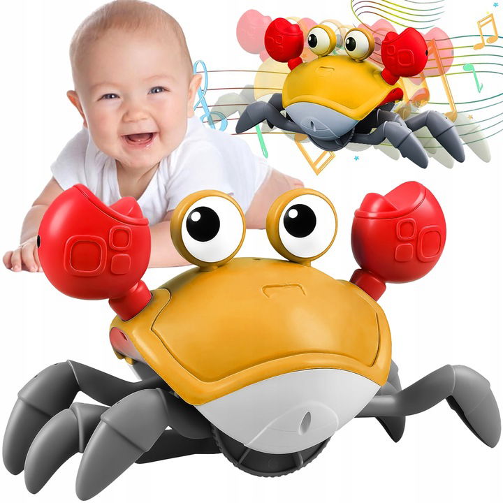 Dźwięki i Melodie: Zabawka generuje różnorodne dźwięki, od naturalnych odgłosów kraba po przyjemne melodie. To dodatkowo rozbudza zmysły dziecka i wzbogaca doświadczenie zabawy.