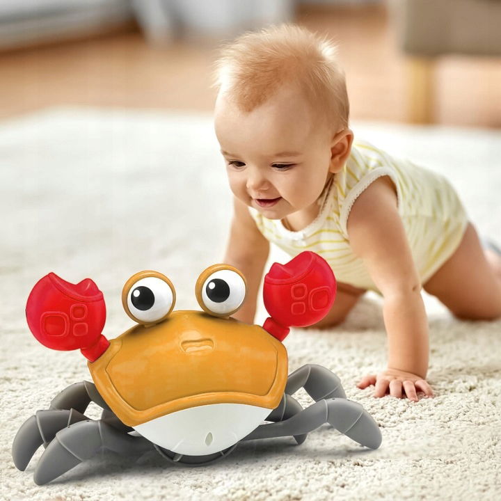 Interaktywność: Krab posiada wbudowane sensory i czujniki, które reagują na bodźce z otoczenia oraz interakcję dziecka. To sprawia, że zabawa staje się bardziej angażująca i dostosowuje się do reakcji malucha.