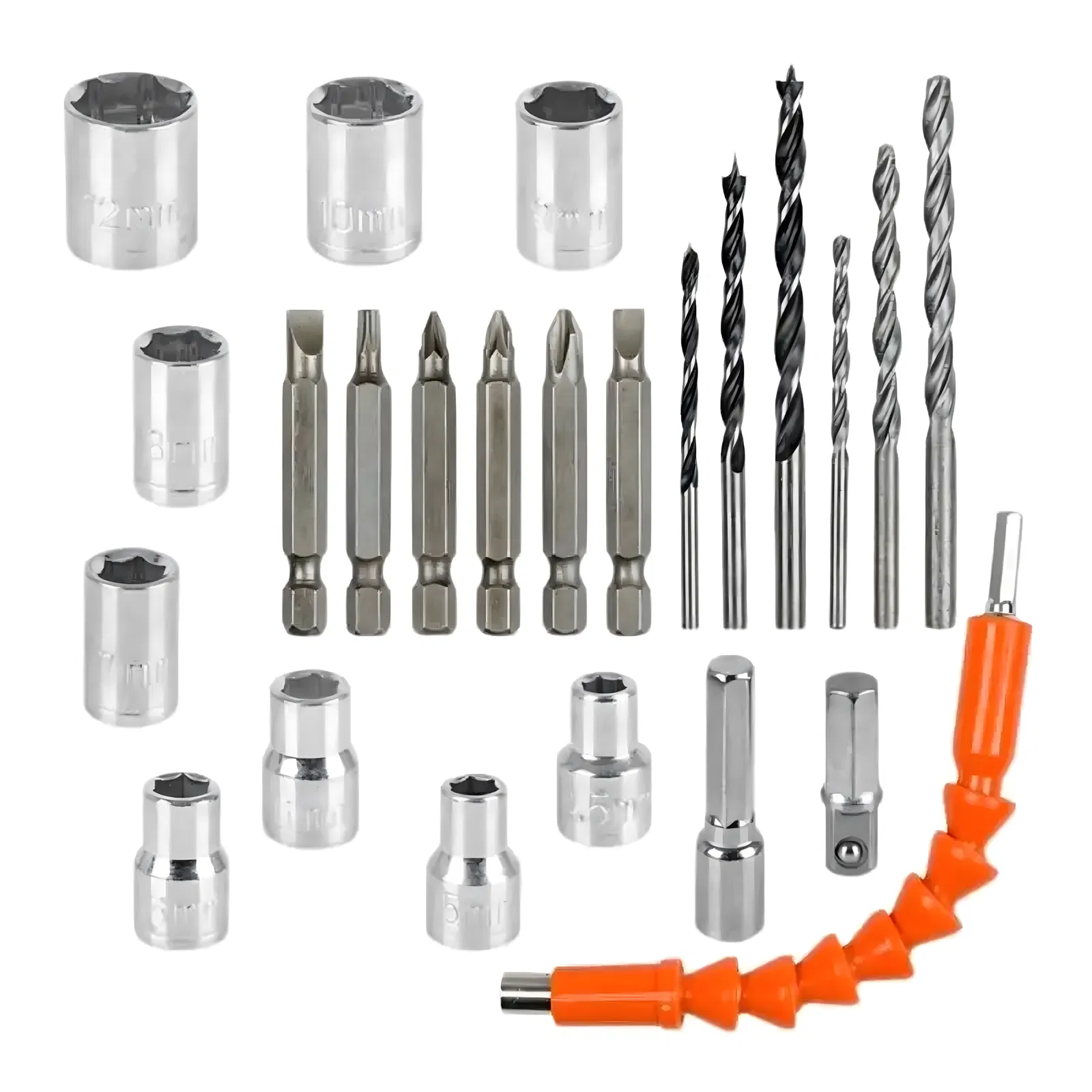 ?Bogaty zestaw akcesoriów – wiertła, bity, nasadki i elastyczny przedłużacz.
