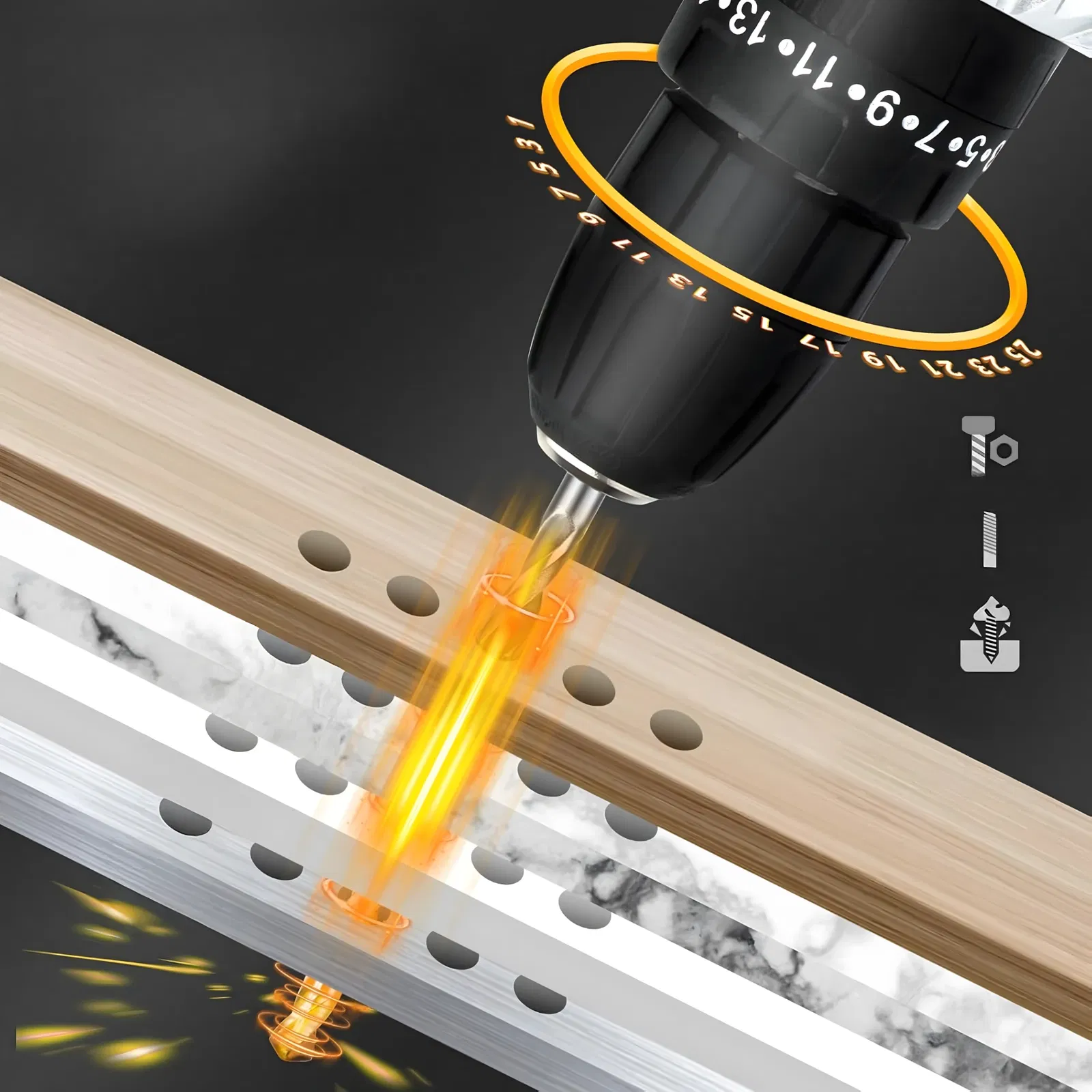 ✔️ Wiercenie w drewnie, metalu, plastiku.