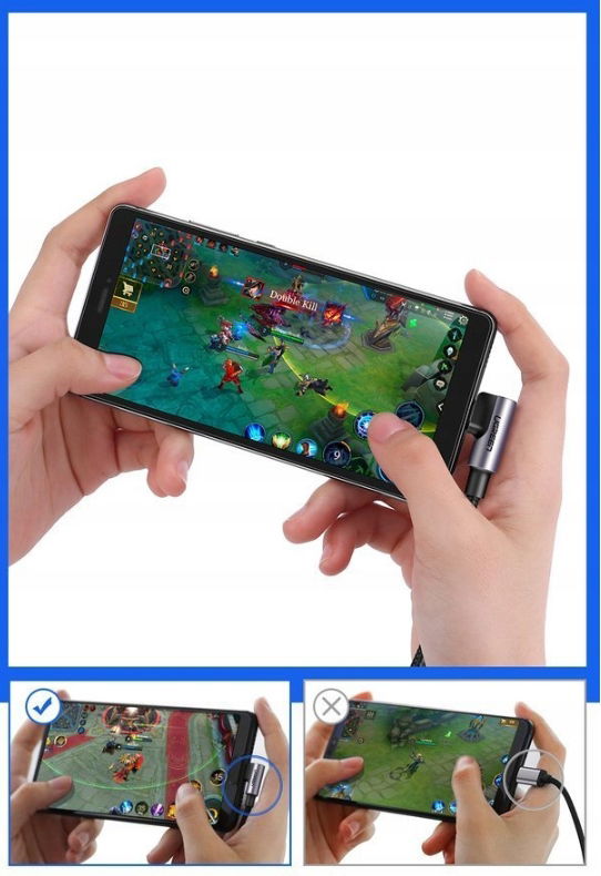 - ✴️Konstrukcja Podwójnego Złącza Kątowego 90 Stopni: dwa złącza 90 stopni oszczędzają miejsce i zapewniają elastyczność. Nadaje się do ładowania zarówno w samochodzie, jak i podczas zabawy. Twoja ręka nie zostanie zablokowana przez kabel ładujący podczas ładowania telefonu, gdy telefon wymaga ładowania.