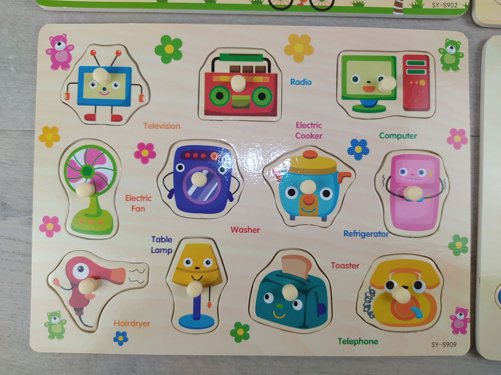 Puzzle z przedmiotami domowymi – telewizor, komputer, lampka, radio i inne