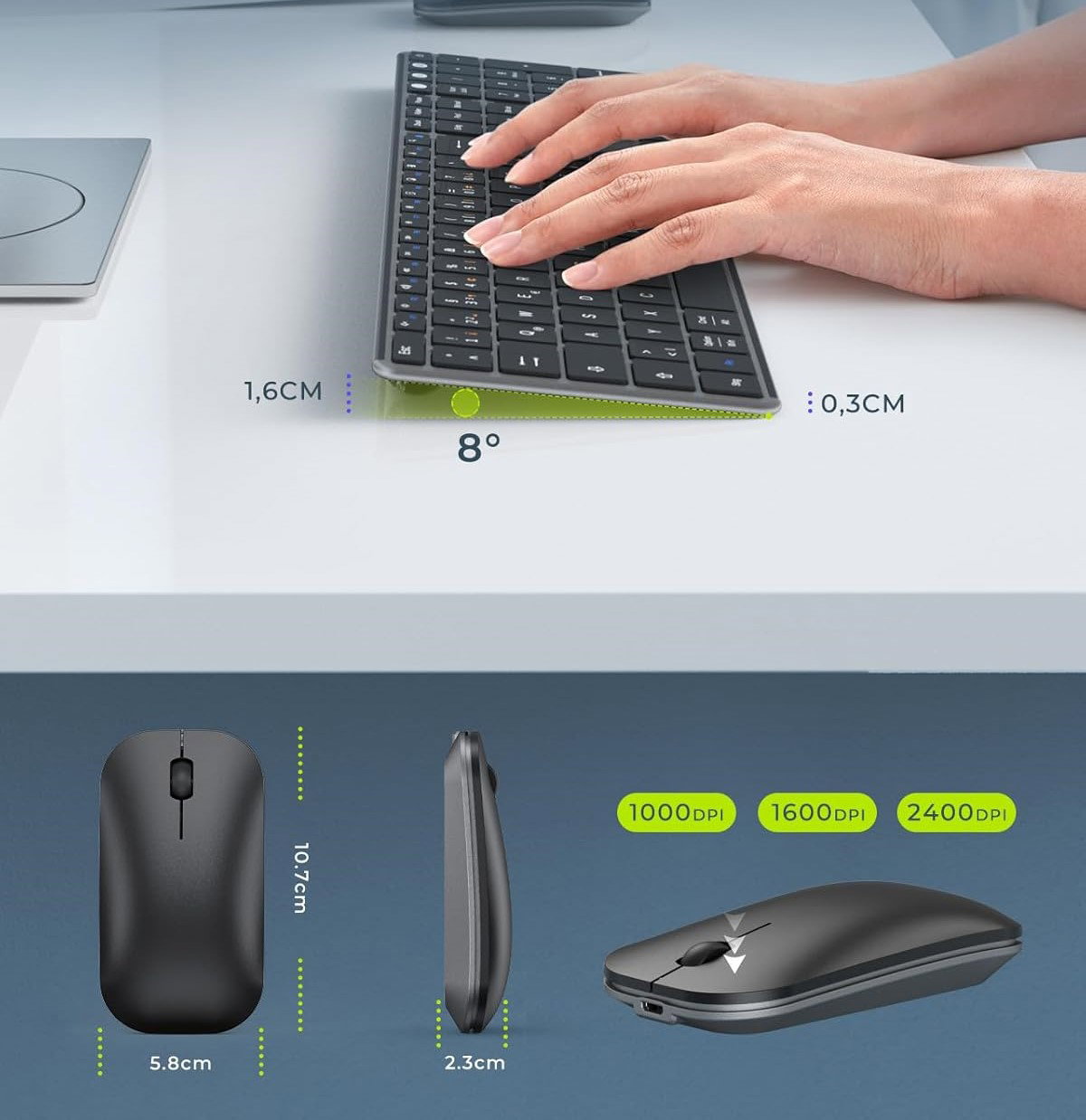 ✅ Ultracienka klawiatura - Najcieńsza część tej bezprzewodowej klawiatury ma zaledwie 3 mm. Zaprojektowano ją tak, aby była lekka, ultracienka i wysokiej jakości.