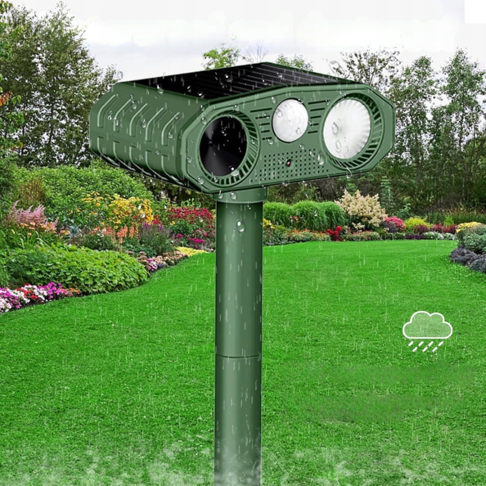 - Zastosowanie: odstraszacz służy do zabezpieczania ogrodów, podwórek, tarasów i innych terenów zewnętrznych przed zwierzętami. Może być stosowany w pobliżu roślin, trawnika lub ścieżek, aby zapobiec niszczeniu przestrzeni. Sprawdza się jako ekologiczne i bezpieczne rozwiązanie do ochrony posesji bez użycia środków chemicznych.