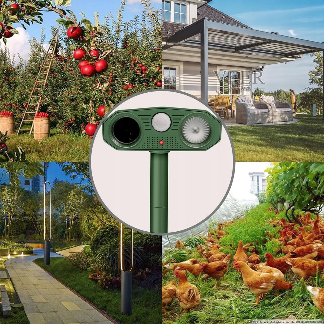 - Szerokie zastosowanie: idealne rozwiązanie do ogrodów, podwórek, sadów, pól uprawnych i gospodarstw, skutecznie chroni przed kotami, psami, szopami, jeleniami, skunksami i innymi zwierzętami. Należy pamiętać, że efekt odstraszania pojawia się po 7–10 dniach regularnego działania urządzenia.