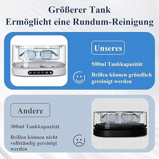 Duża pojemność 500 ml: Ultradźwiękowa myjka oferuje hojną pojemność 500 ml do czyszczenia różnych cennych przedmiotów codziennego życia. Duża pojemność gwarantuje, że cały przedmiot jest dokładnie wyczyszczony bez śladów plam, więc nie musisz się martwić o trudno dostępne bałagany.