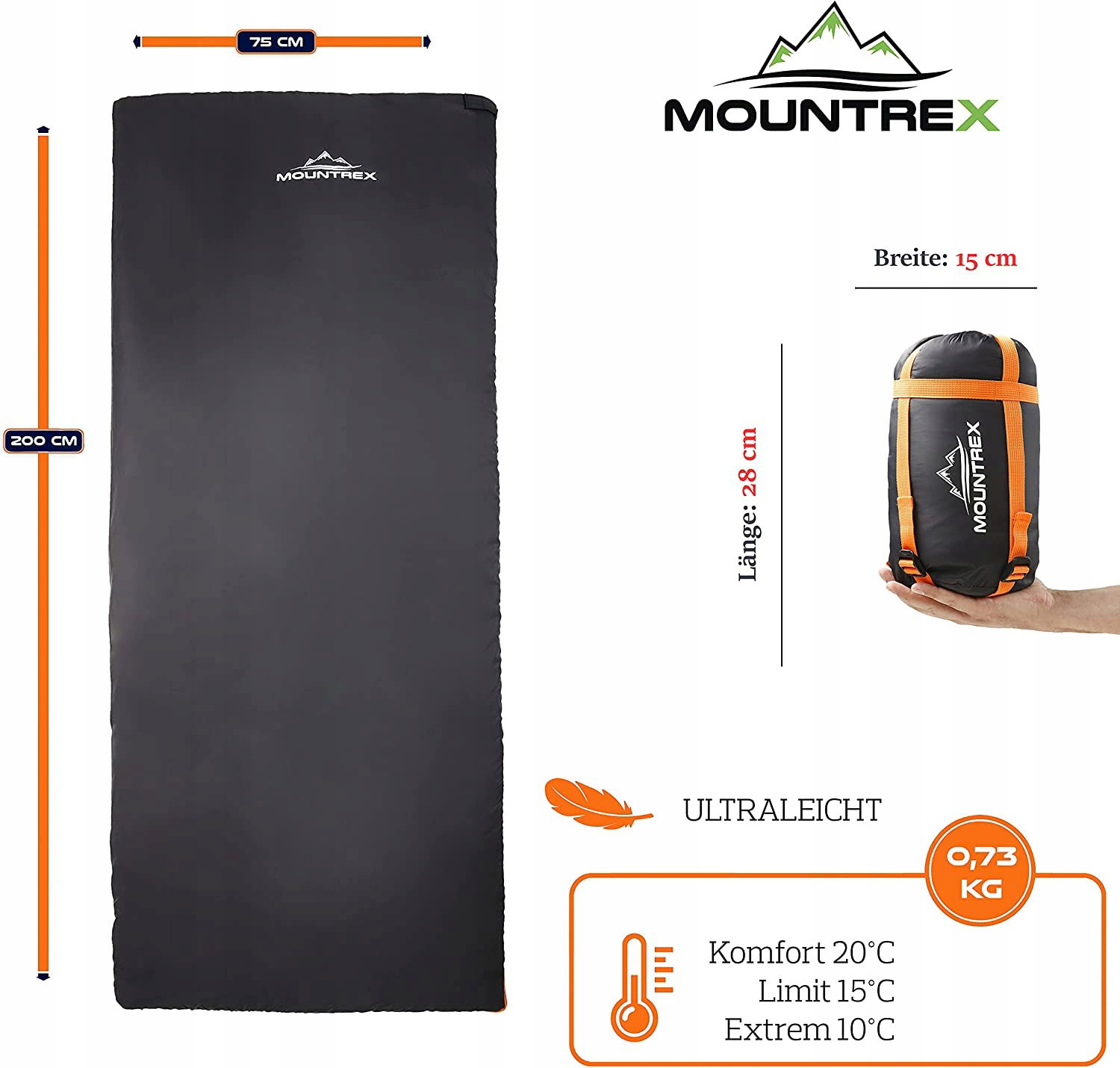 ★ Ultralekki i bardzo mały rozmiar po spakowaniu – śpiwór firmy Mountrex to ultralekki śpiwór podróżny. Pomimo dużej powierzchni do leżenia 200 x 75 cm w dostarczonym worku kompresyjnym mierzy zaledwie 28 x 15 cm przy wadze zaledwie 730 g. Idealny dla wszystkich, którzy chcą zaoszczędzić maksymalną oszczędność miejsca.