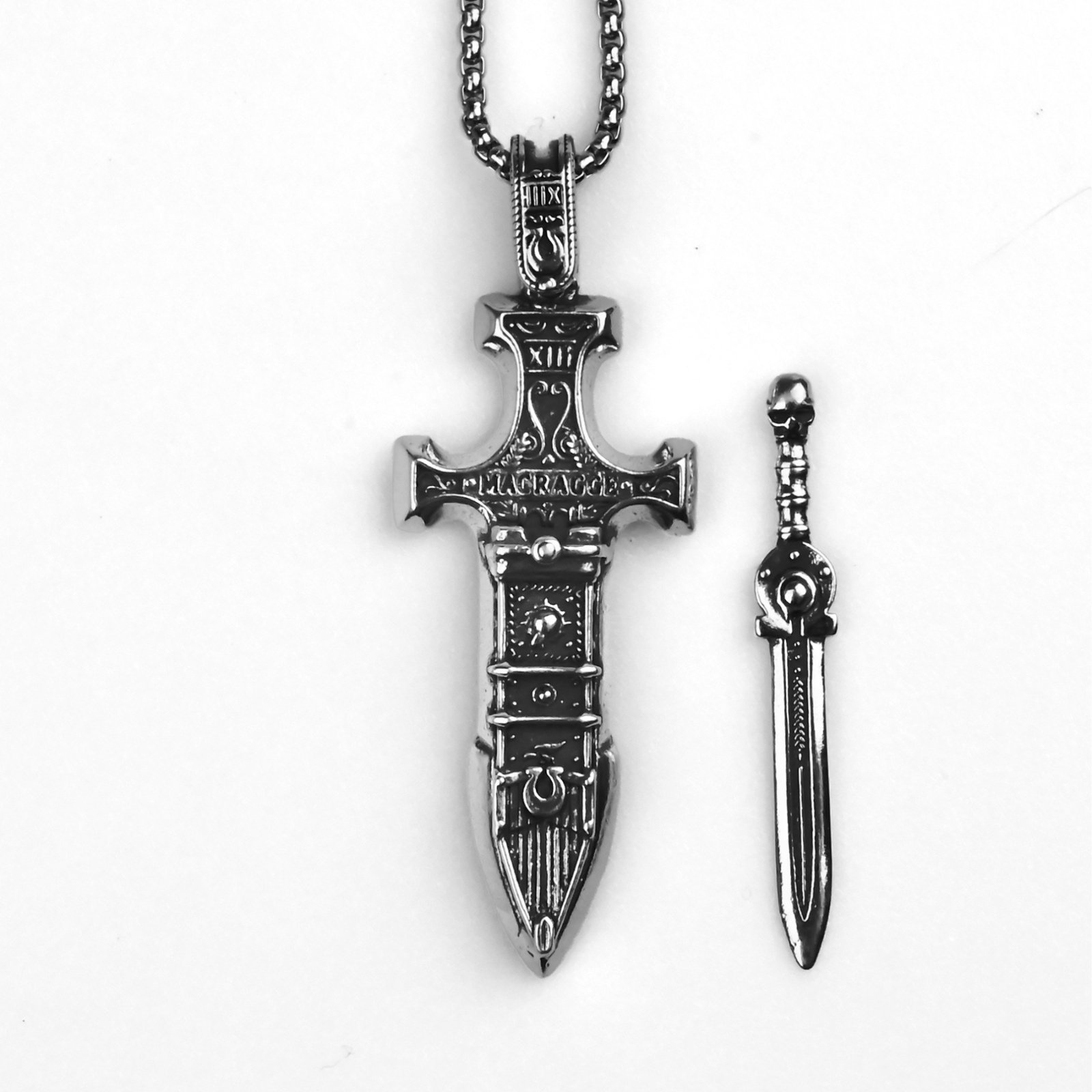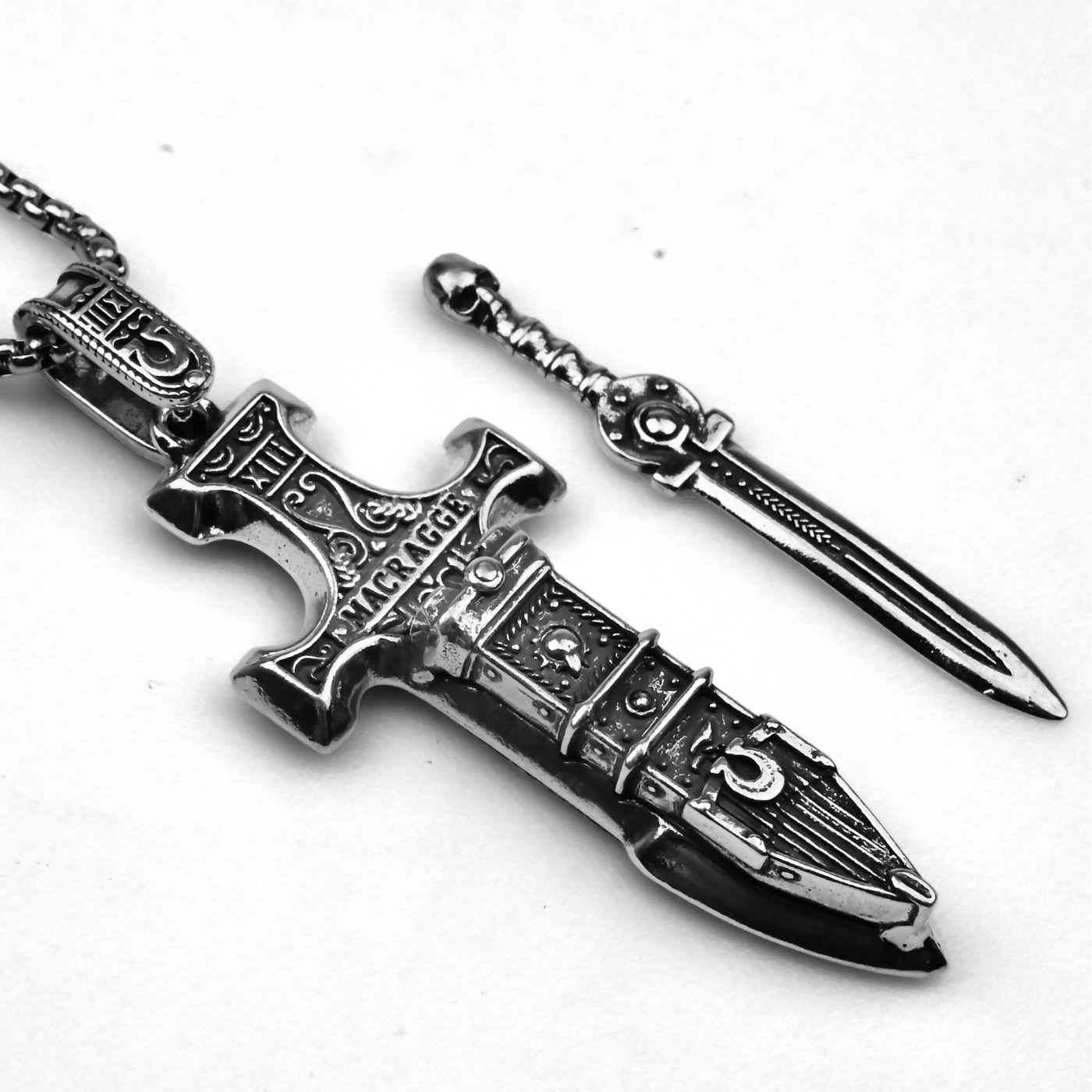 Wykuty na cześć najbardziej zdyscyplinowanego i szlachetnego z zakonów Kosmicznych Marines, ten kolekcjonerski miecz relikwii Ultramarines oddaje hołd spuściźnie Roboute’a Guillimana oraz niezłomnym wojownikom Ultramaru. Głęboko zakorzeniony w doktrynie Imperium i zdobiony ikonografią XIII Legionu, ten brelok wnosi ducha honoru i porządku do codzienności. Wykonany z wytrzymałego metalu, mierzy 8 cm i przedstawia miniaturowy miecz osadzony w bogato zdobionej pochwie. Wzory takie jak napis „ULTRAMAR”, laurowe ornamenty, cyfry rzymskie i symbole czystości zostały precyzyjnie wyrzeźbione w srebrzystej powierzchni, tworząc realistyczny i immersyjny efekt. Wyjmowane ostrze dodaje elementu interaktywności, a jego faktura i ciężar podkreślają ceremonialny charakter broni. Całość uzupełnia solidne zapięcie z łańcuszkiem – praktyczne, a zarazem ozdobne. Jako gadżet Warhammer 40k, ten miecz symbolizuje honor, lojalność i porządek Imperium. Może być noszony jako osobisty amulet lub podarowany innemu synowi Macragge – zawsze przypomina o odwadze Ultramarines i ich niezłomnej wierze. Idealna pamiątka dla kolekcjonerów, fanów i wyznawców imperialnego ideału.