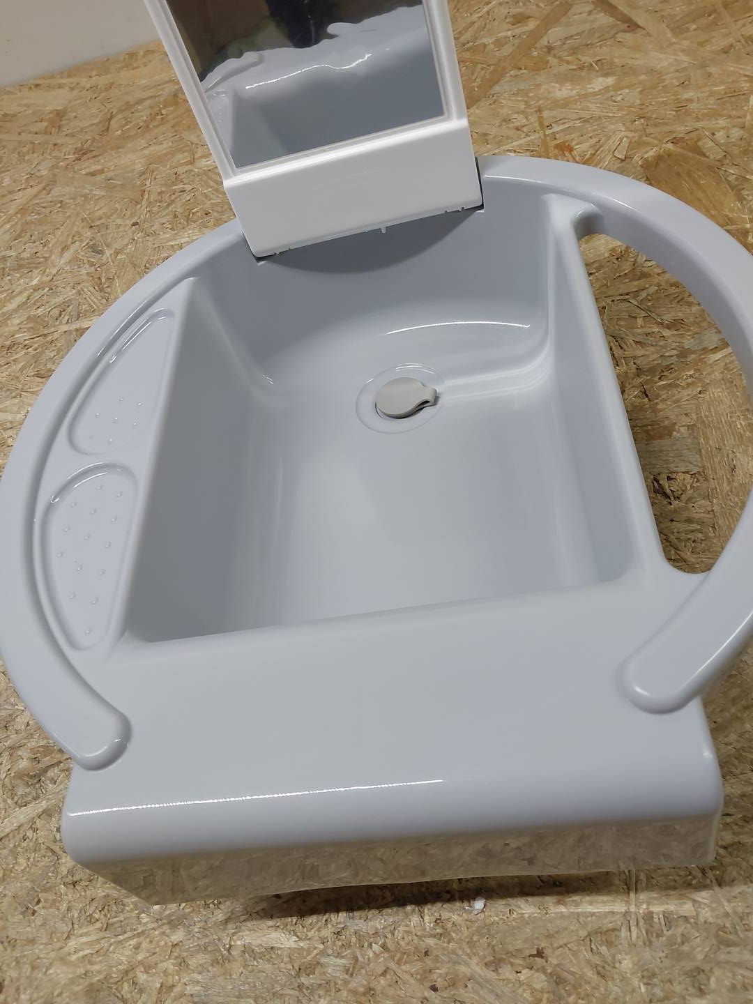 - w zestawie z lusterkiem i kubkiem na szczoteczkę do zębów;