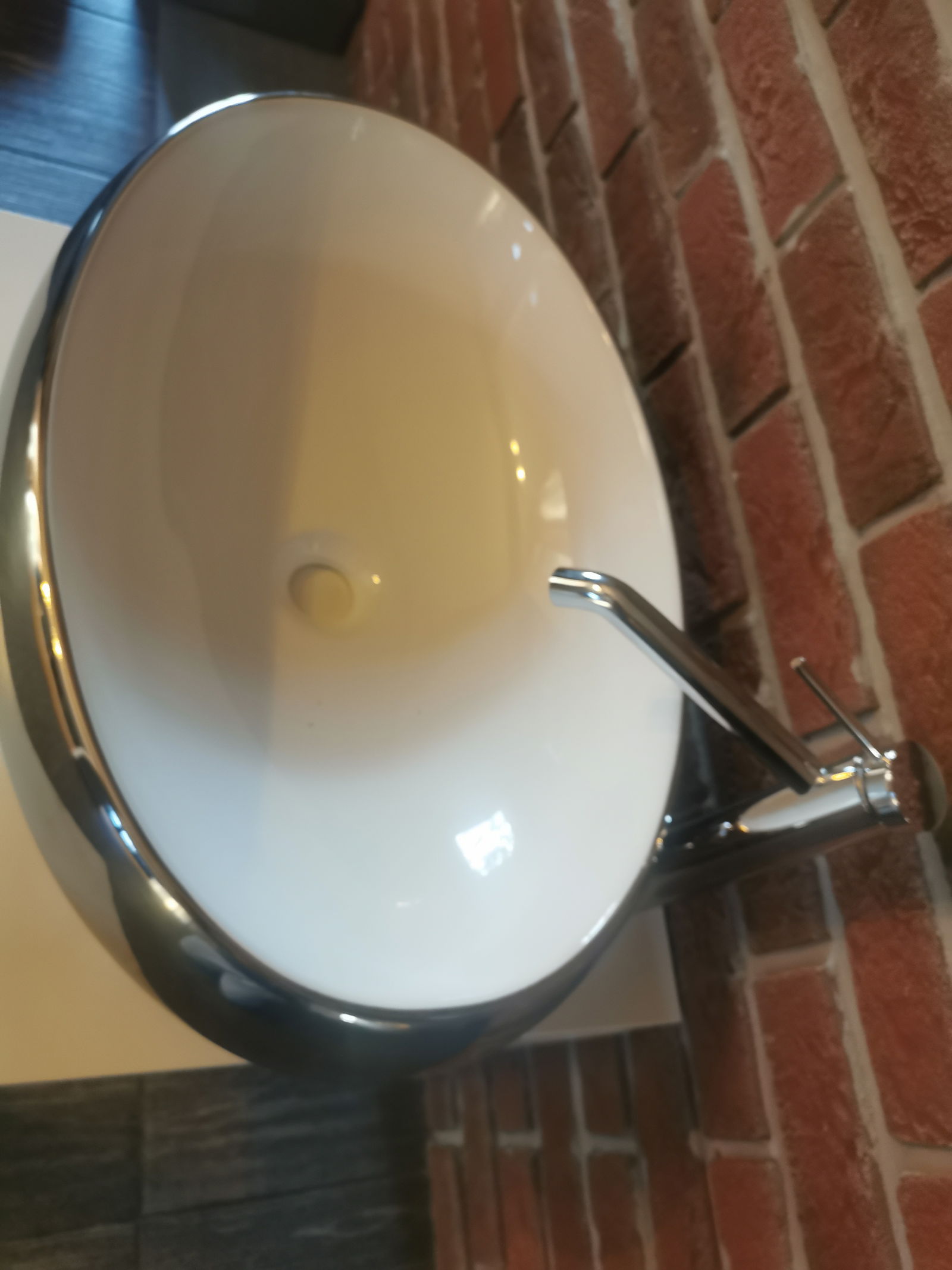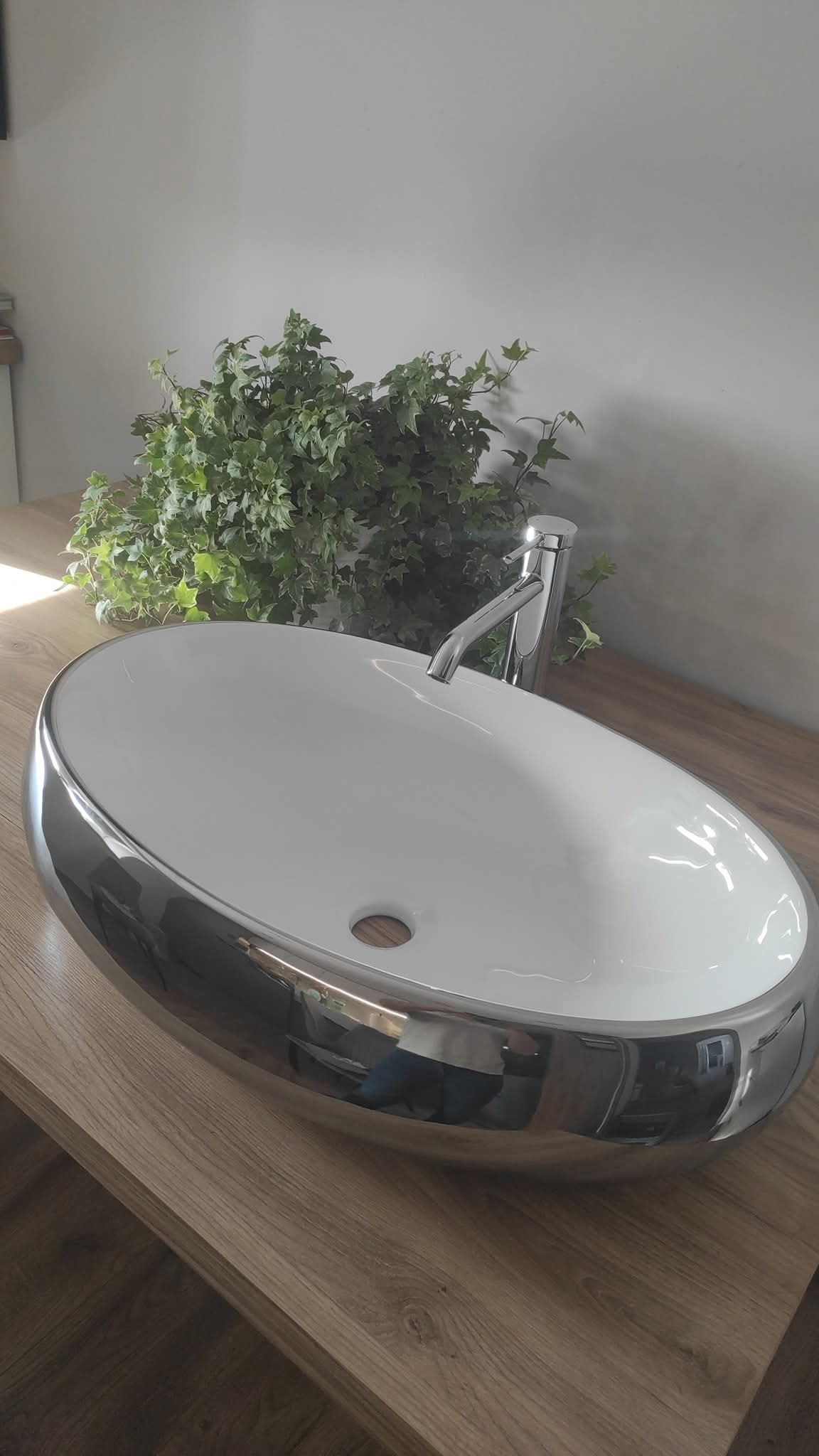 Umywalka nablatowa owalna, w kolorze biały/chrom